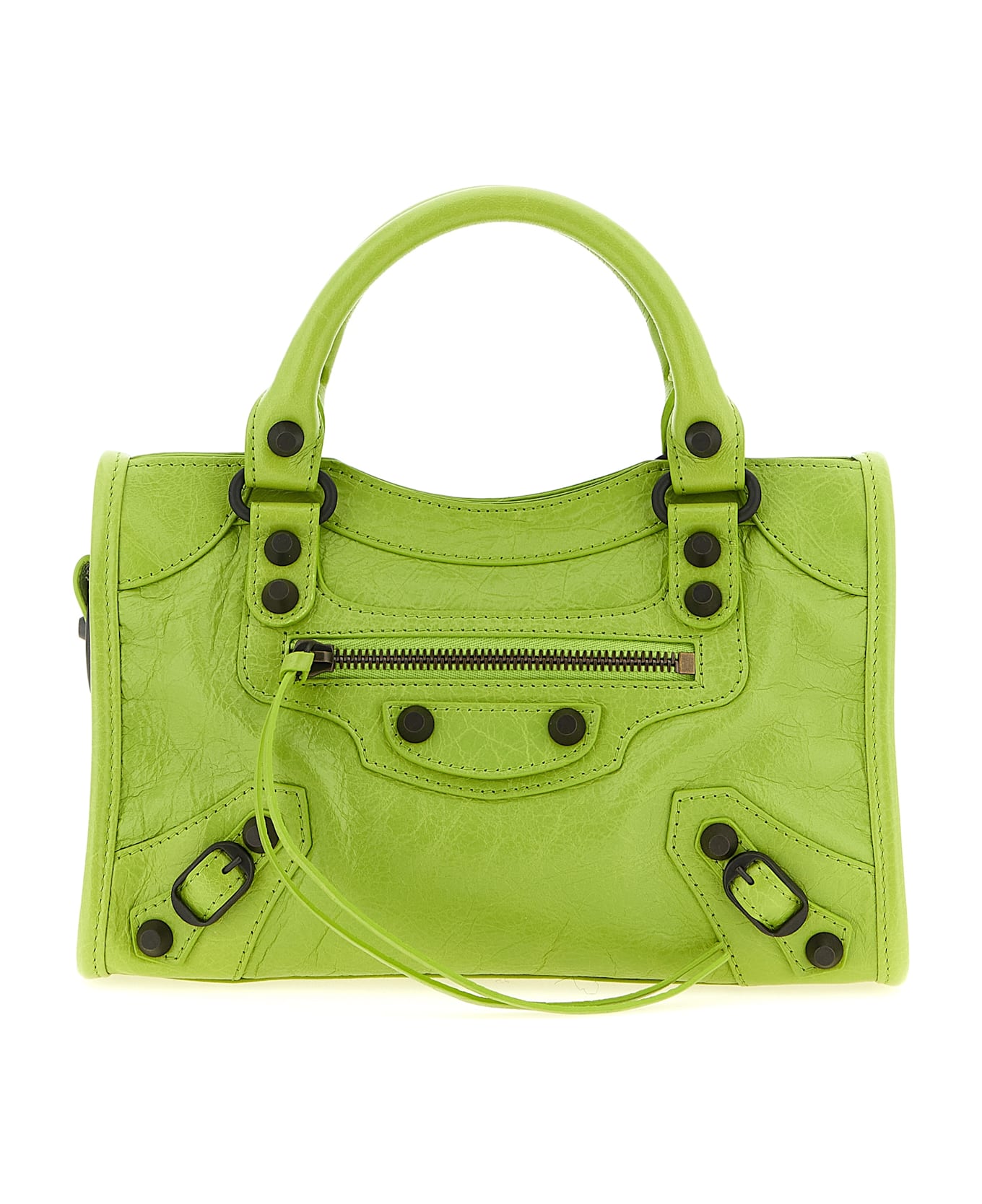 Arena Storico 'Le City Mini' lambskin handbag with brass finish studs, double fixed handle, top zip closure, front zip pocket, cotton canvas lining, adjustable and removable shoulder strap. Composition: 100% lamb leather (Ovis aries)