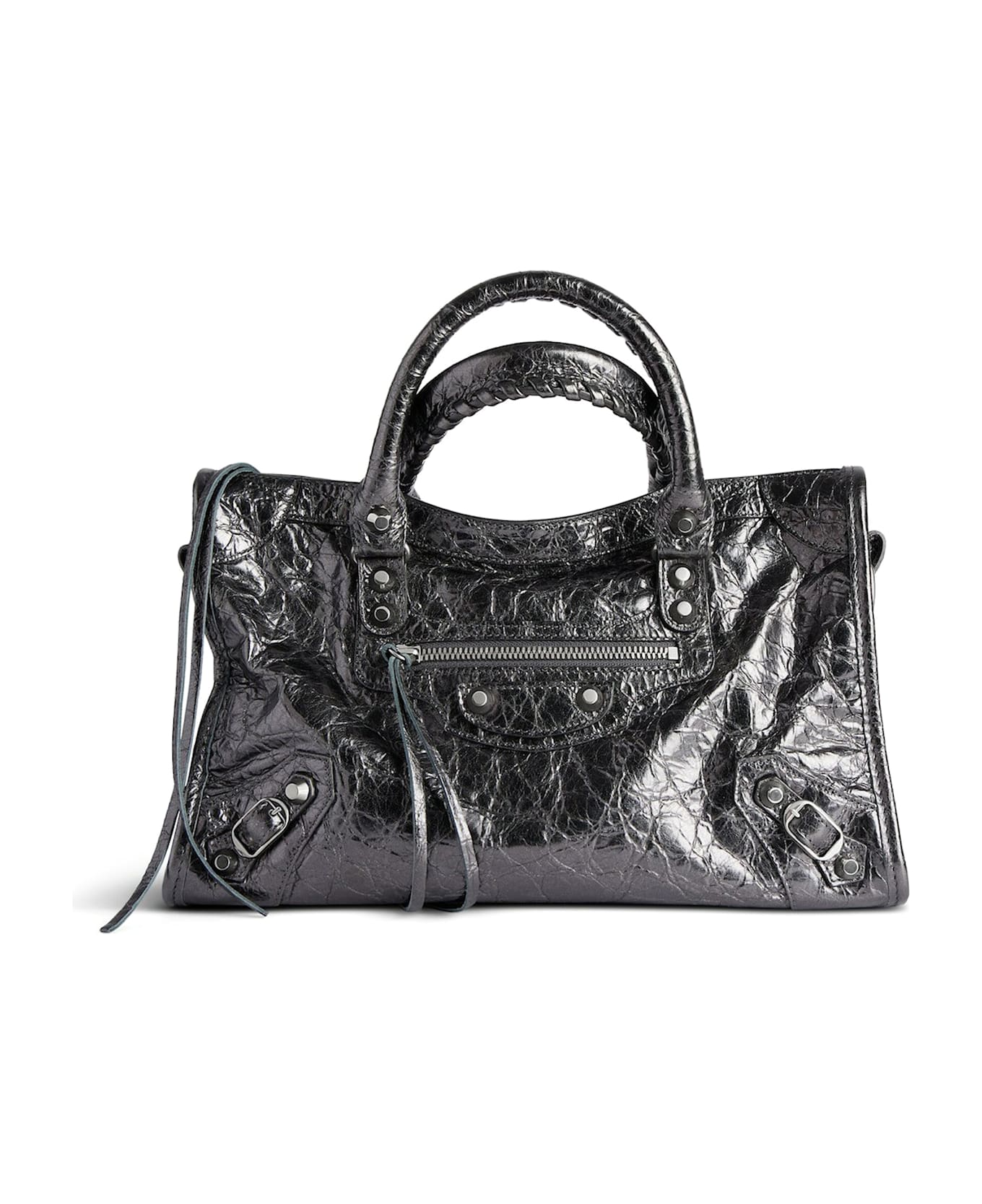 - Dimensions: L 29. 9 x H 19 x D 9. 9 cm - Metallic Arena lambskin - Two hand-woven leather handles - Removable and adjustable shoulder strap (drop: 50 cm) - Shiny silver finishes - Zip closure with knotted leather zip pull - Front zip pocket with knotted leather zip pull - Inside zip pocket - Cotton canvas lining