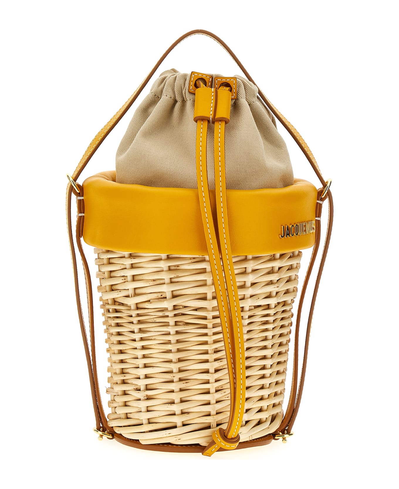 Le Panier Seau' straw bucket bag with leather details, drawstring closure and a front logo detail. Composition:
