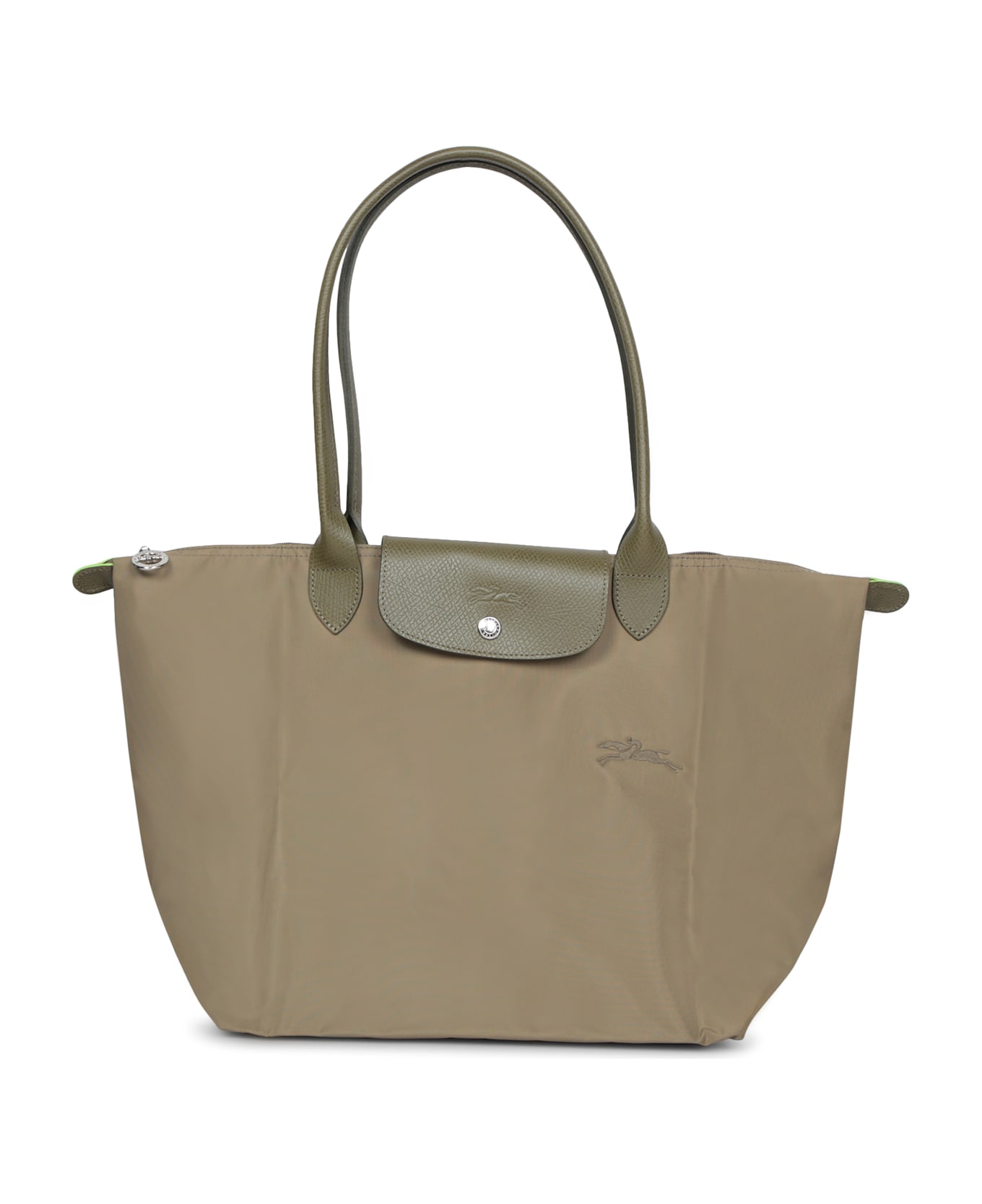 This elegant Longchamp Le Pliage S bag in artichaut shade blends practicality with style. Crafted with leather handles and a button closure, it's perfect for any occasion.