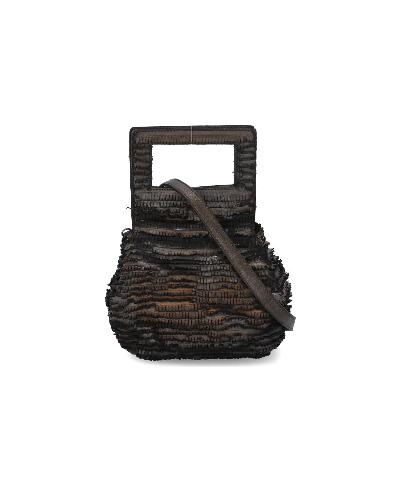 - Brown Majo frayed skin bag for woman - Two handles with magnetic fastening - Removable and adjustable shoulder strap - One main compartment - Two internal zip pockets