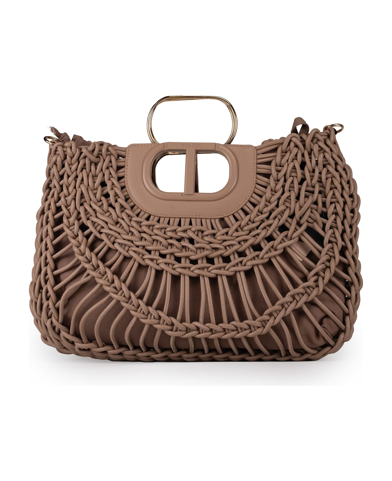 women's leather effect bag: woven workmanship magnetic closure double metal handle oval-t logo on both sides removable and adjustable shoulder strap lined composition: imitation leather