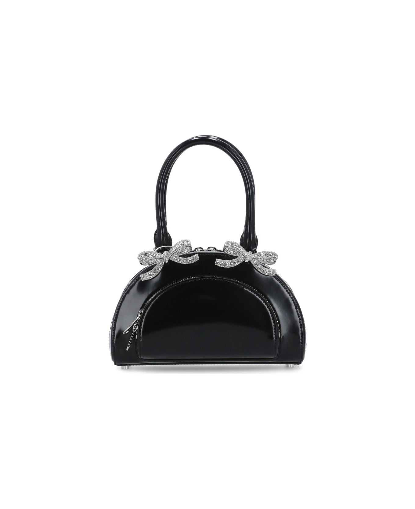 - Black Self Portrait polished leather hand bag for man - Two handles - Interior welt pocket - Zip fastening - Two front bows with strass - Front zip pocket