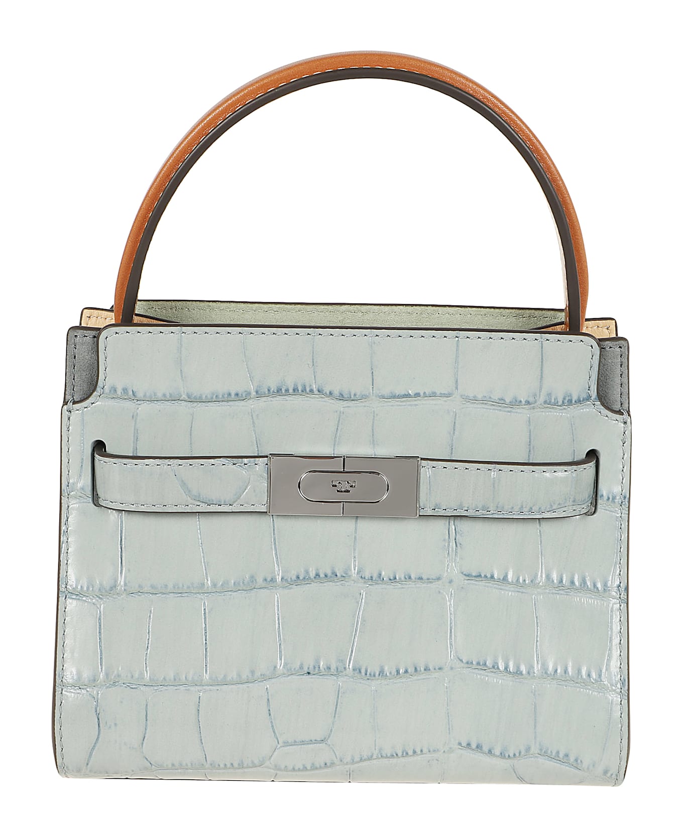 Lee Radziwill Croc Embossed Petite bag in embossed crocodile leather and suede and leather finishing BY TORY BURCH. Herringbone cotton lining, two internal card slots; automatic closing; shoulder strap with snap closure.