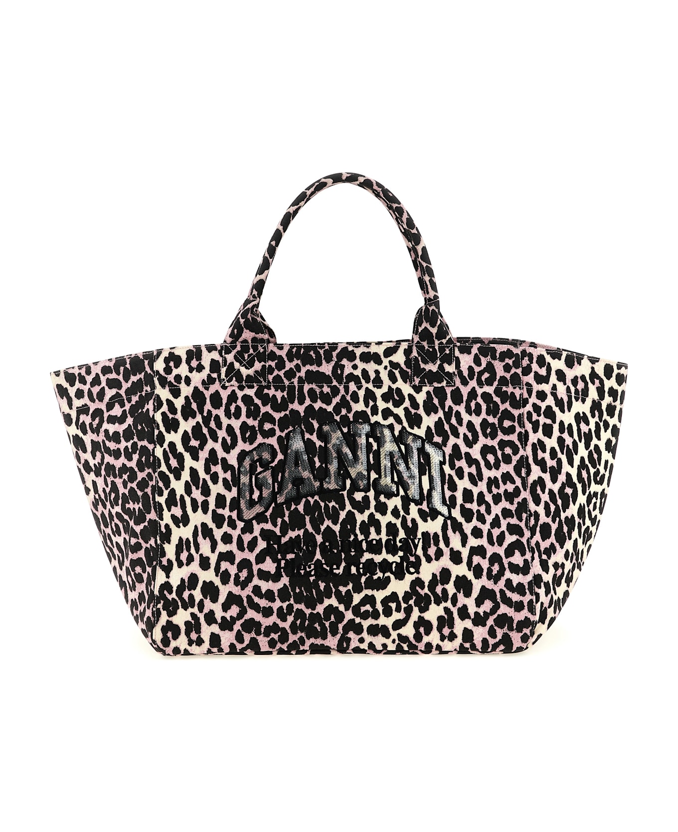 'Leopard Sequin XXL Tote' canvas shopping bag with embroidery with front sequin application, double fixed handle. SUSTAINABLE: This product is made with recycled cotton. Composition: 100% recycled cotton
