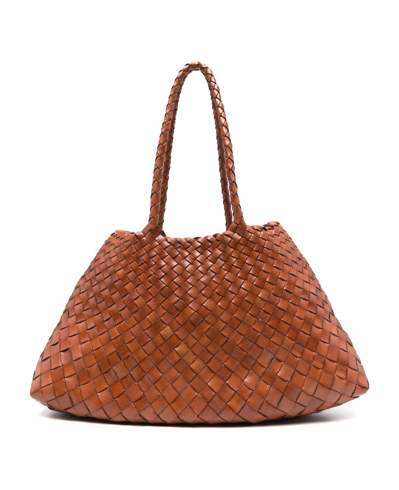 Light brown woven Santa Croce tote bag, calf leather, woven design, two round handles, trapeze pattern, magnetic closure and single compartment, 44X23X14 CM Composition: Leather, 100%