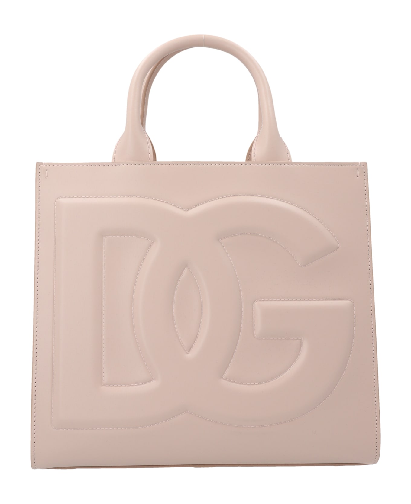 Leather handbag featuring a front embossed logo and a double leather handle. Composition: 100% leather