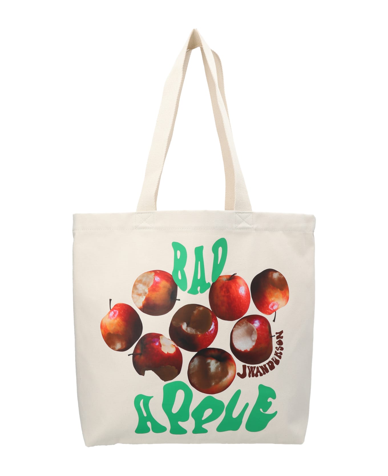Cotton canvas shopping bag with front logo print and a leather logo patch.