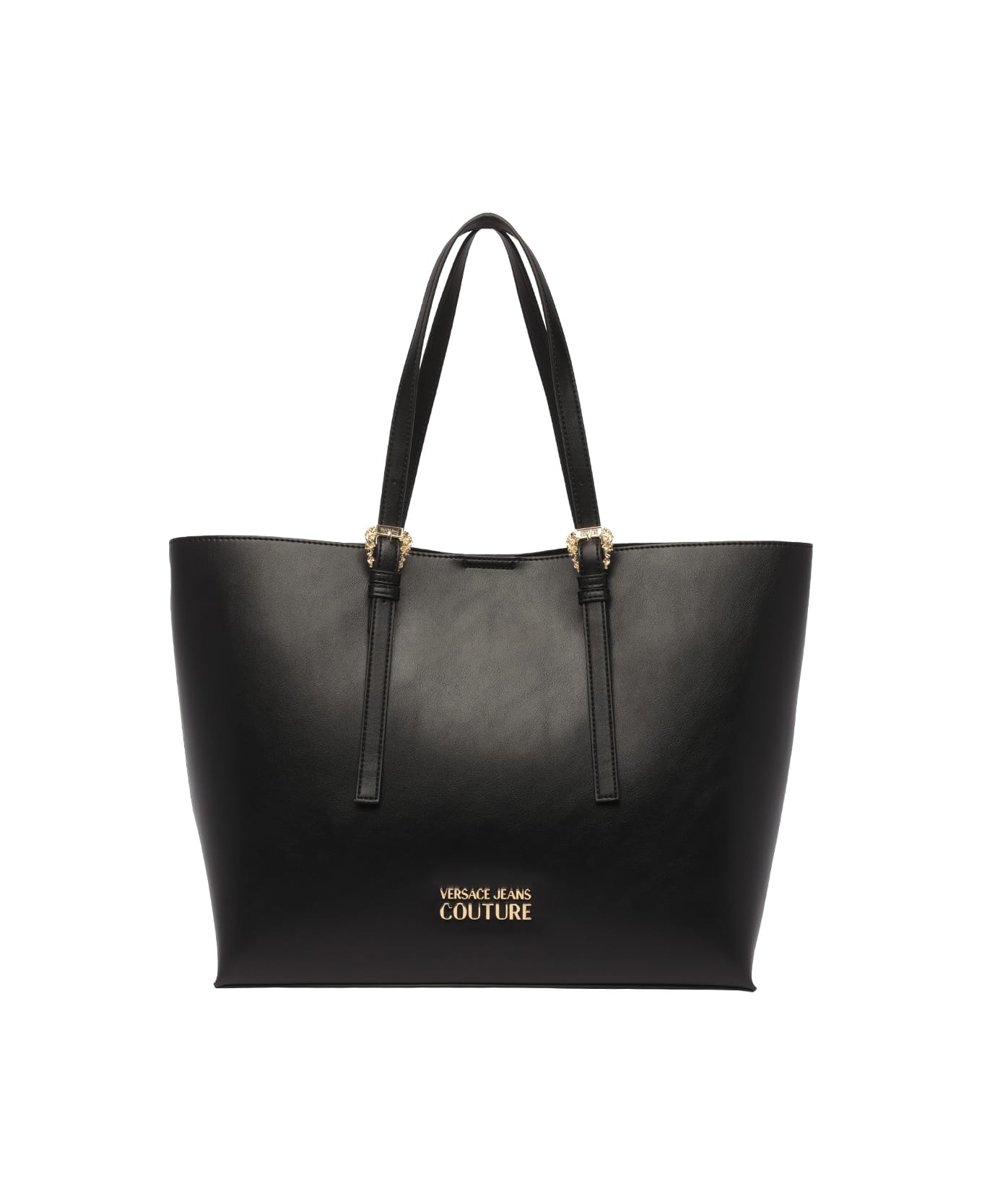 Vesrace Jeans Couture black shopping bag, frontal logo, magnetic closure and strap with carabiner, inner pohette removable with zip, 2 handles