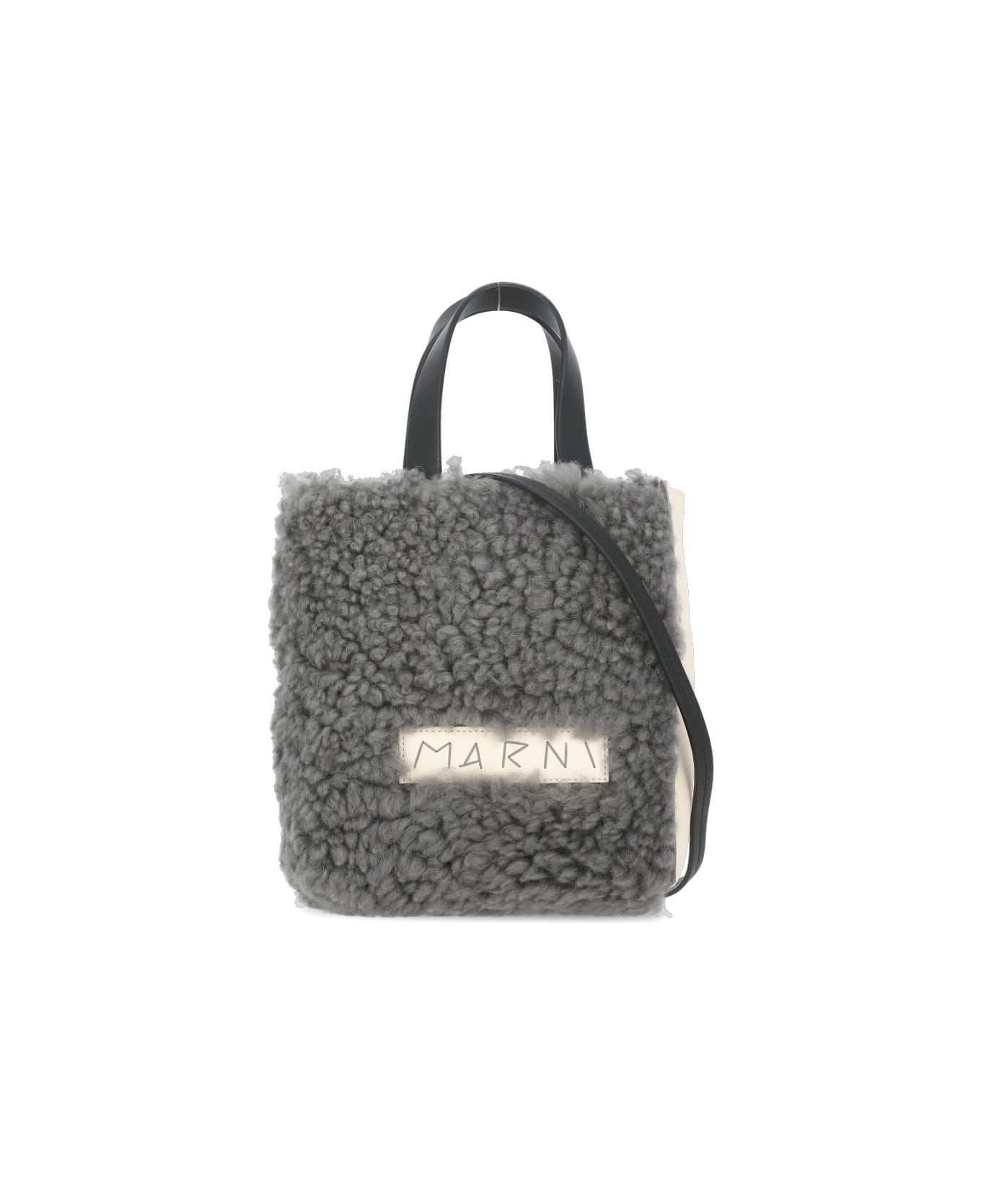 - Grey Marni leather hand bag for woman - All-over fur details - Two handles - Removable shoulder strap - Interior zip pocket - Magnetic button fastening - Front contrasting color logo Composition: 100% Cowhide Lining:, 100% Fur Fabric:, 100% Lamb Fur