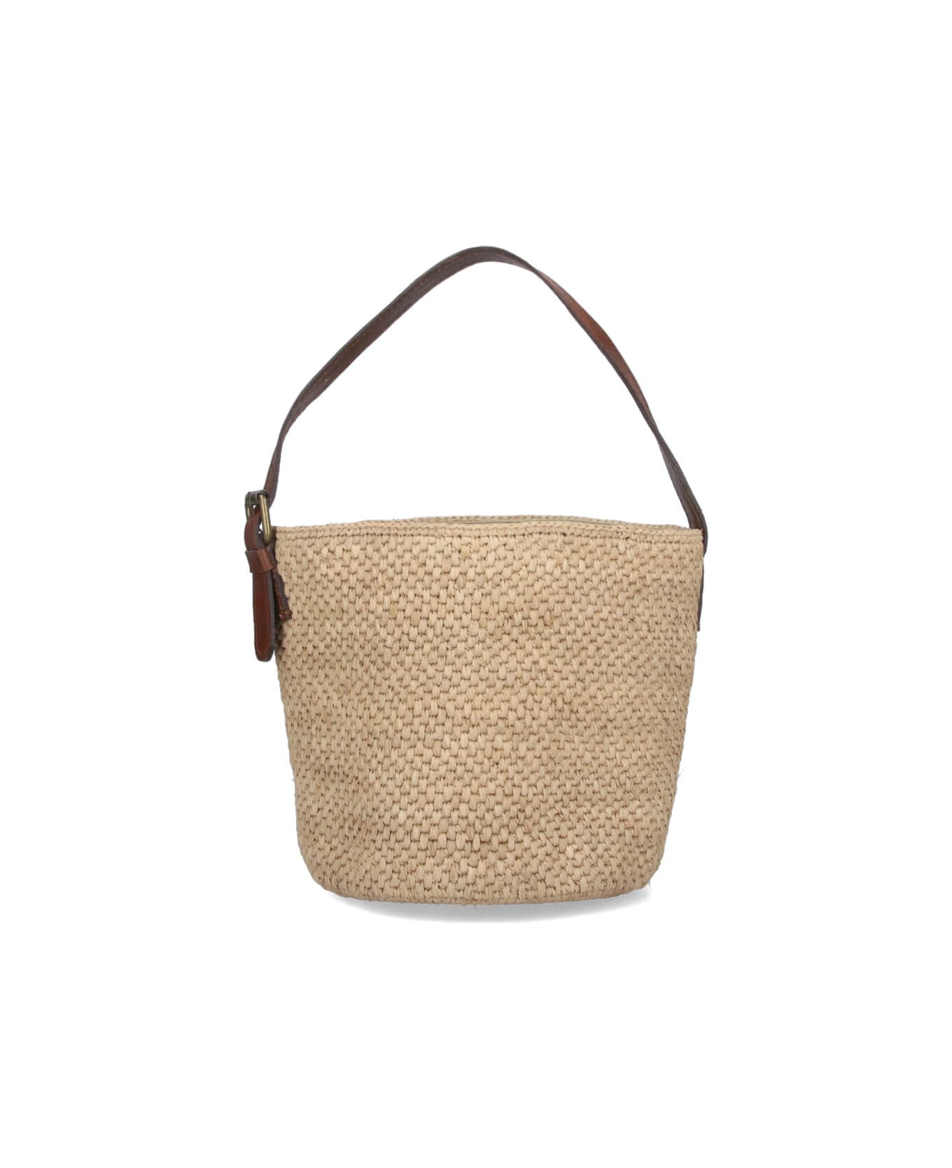 Ibelliv "Lova" bucket bag in beige raffia with leather trim, adjustable handle, drawstring closure, a single inner compartment. Composition: 100% Raffia
