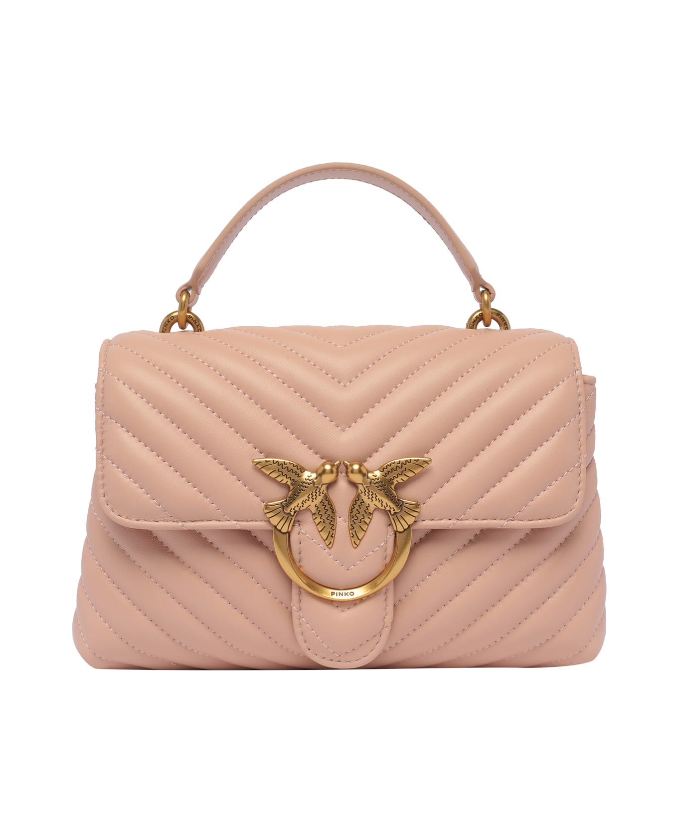 Pinko powder Love Lady Puff mini handbag with magnetic closure and 2 compartments (one with magnetic closure), inner zip pocket and one open pocket, one handle, adjustable and removable shoulder strap