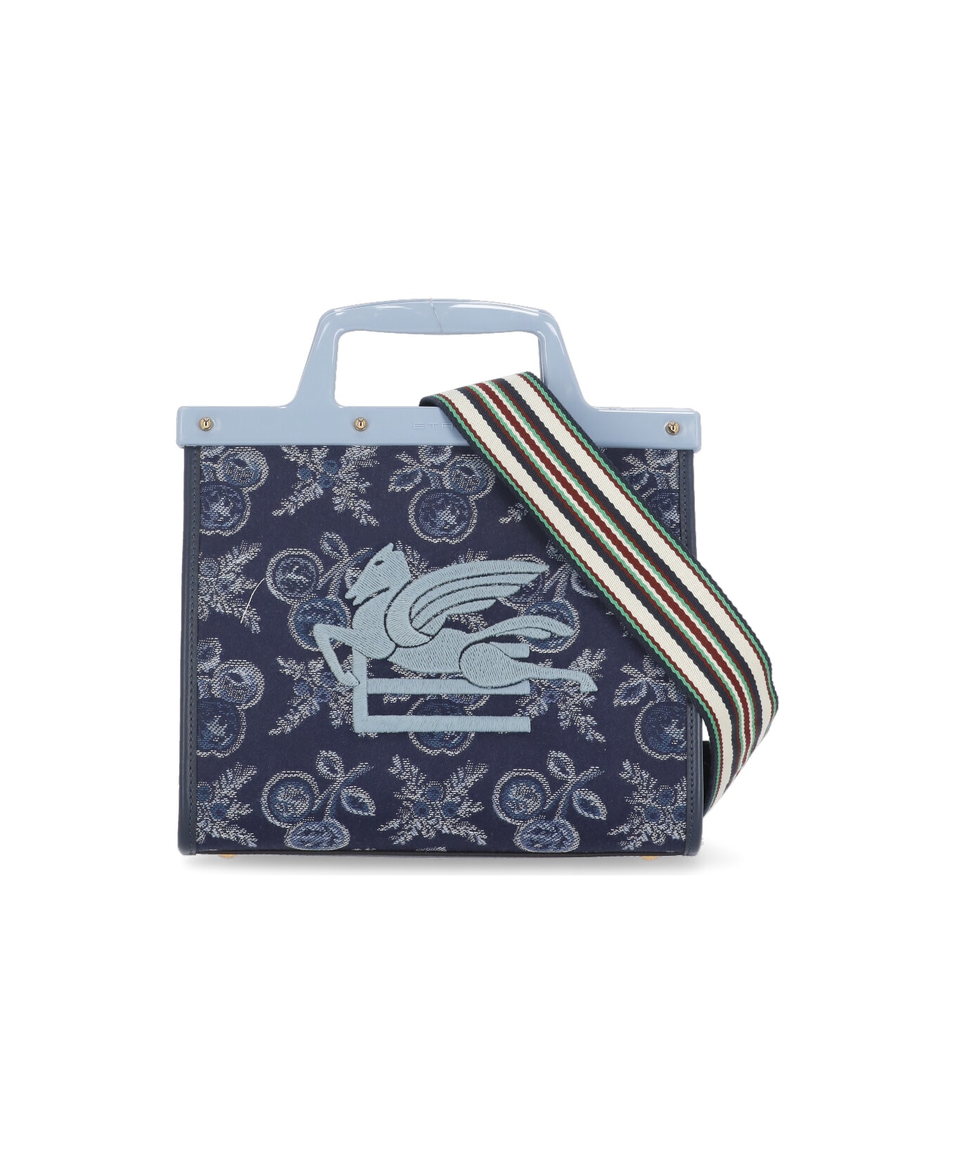 Love Trotter Shopping Bag from Etro: - Blue Etro fabric and leather woman's shopping bag - Two handles - One adjustable and removable shoulder strap - Front contrasting color Pegaso logo embroidery - All-over contrasting color pattern - One main compartment with one interior zip pocket