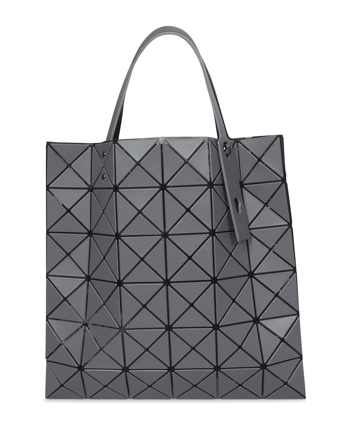 This Issey Miyake tote bag showcases a modern aesthetic with its three-dimensional geometric design that captures light and shadows, crafted from a glossy, semi-rigid material with integrated handles for a contemporary look and uncompromised practicality.