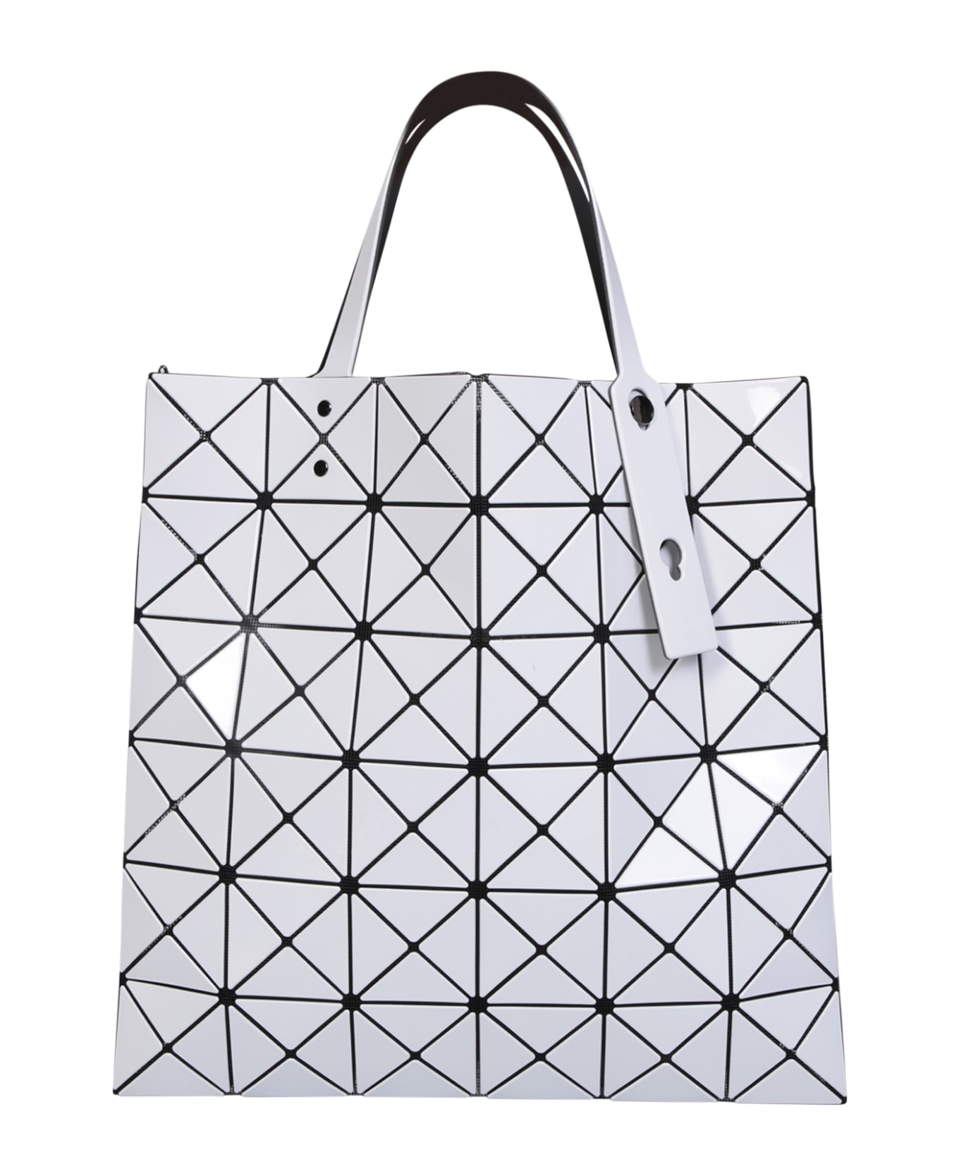 Two top handles. Adjustable handles. Main compartment. Internal logo patch. Full lining. Geometric panelled design. High shine finish. Mesh detailing. Color: white
