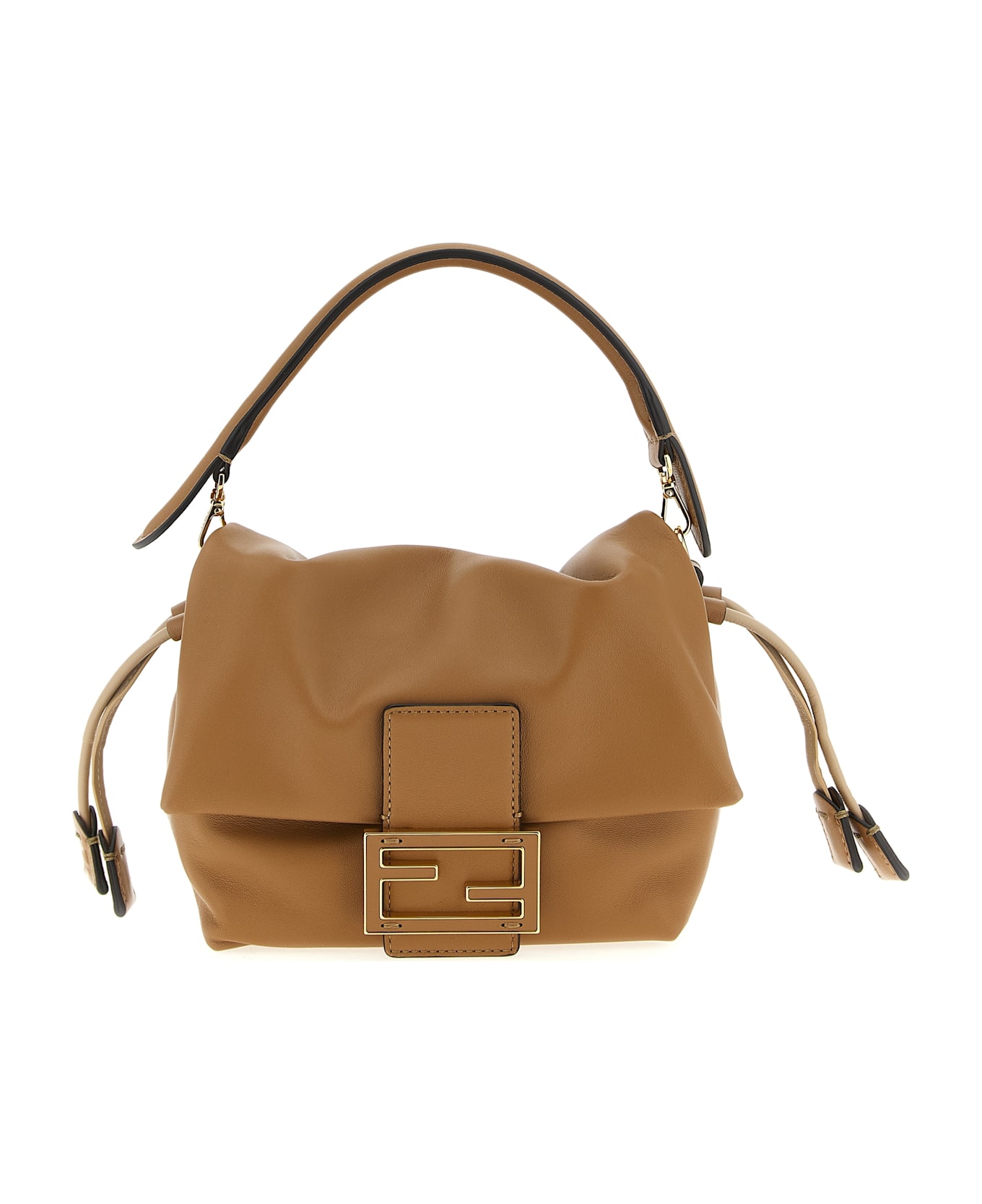'Mamma Baguette Small' nappa handbag, suede lining, adjustable inner drawstring, magnetic flap closure with metal and leather logo buckle, removable short handle, removable shoulder strap. Composition: 100% lamb leather (Ovis aries)