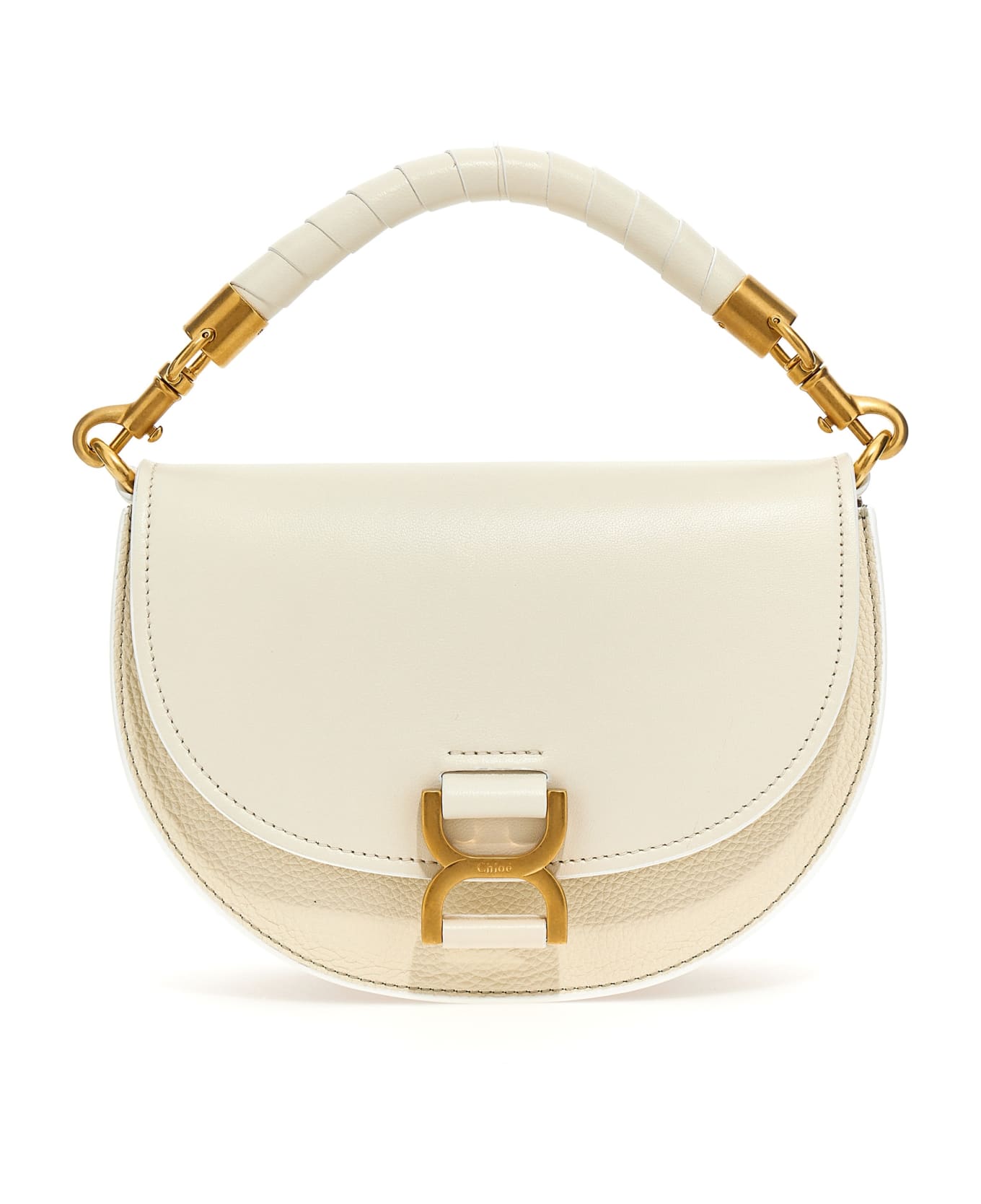 Marcie' leather handbag with magnetic button flap closure, removable handle and removable chain shoulder strap. Composition: