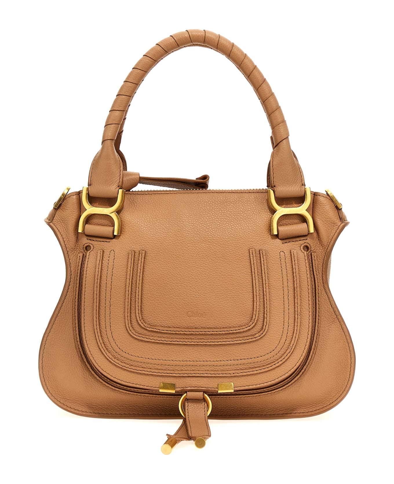 'Marcie' small handbag in grained calf leather, large compartment, zip closure, slip pocket under the front flap, inner zip pocket, removable and adjustable leather shoulder strap with hooks, inner lining, double handle. : this product was made in partnership with tanners from Leather Working Group (LWG) that use less water and energy and have a chemical, solid waste and slurry management policy.
