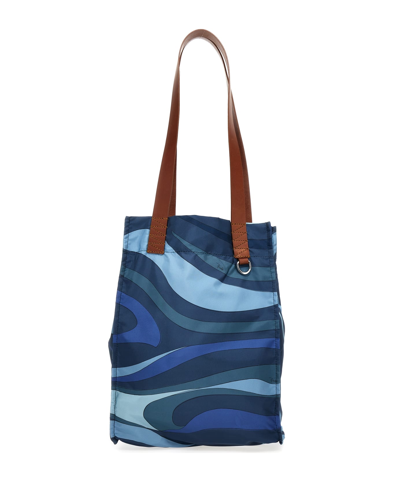 Nylon shopper bag with Marmo print, double leather handle, and inner keyring with snap hook. This product, as well as many other Pucci items, is made with an allover print that falls differently on each garment the product shipped may differ from the one in the photo.
