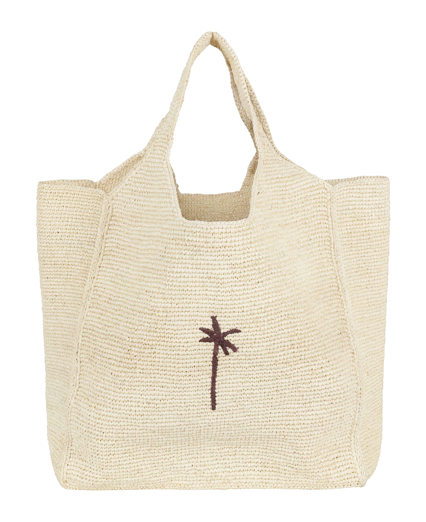 Maxi Tote Bag - Manebì - Natural color - Made of raffia - Single compartment with inside pocket - Double top handle - Contrast embroidered front logo - Size: 50 x 38 x 16 cm.