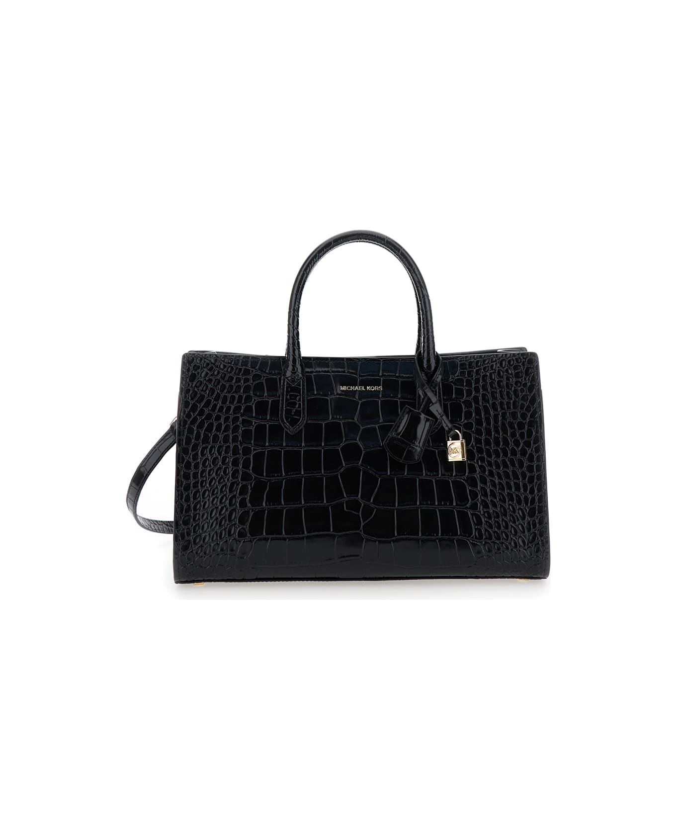 Handbag Black Two top handles Adjustable and removable shoulder strap Concealed magnetic closure Padlock detail Logo lettering on the front Embossed crocodile effect Gold tone metalware Leather Dimensions: 35x21x10 cm