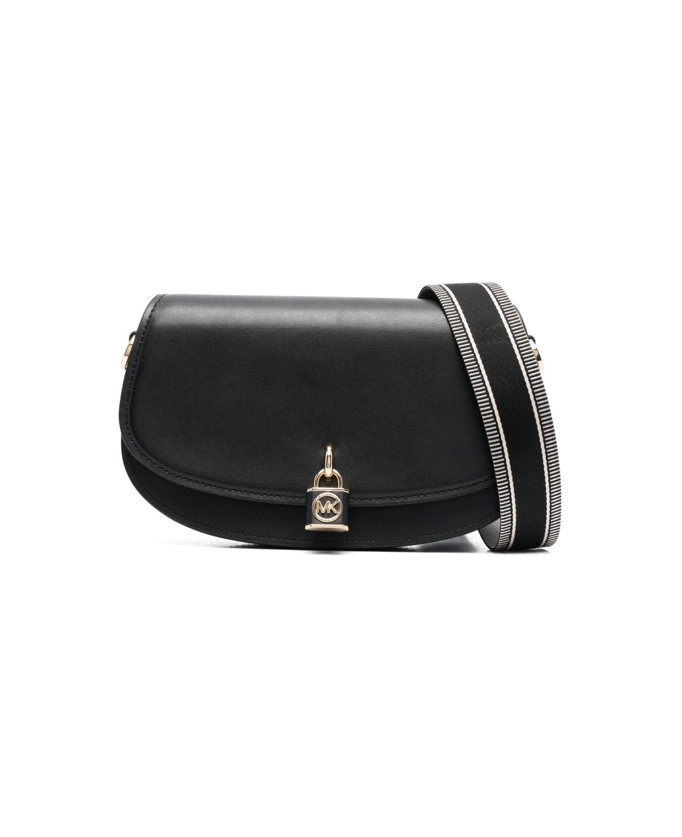 Black Shoulder Bag With Padlock Detail In Cow Leather Woman