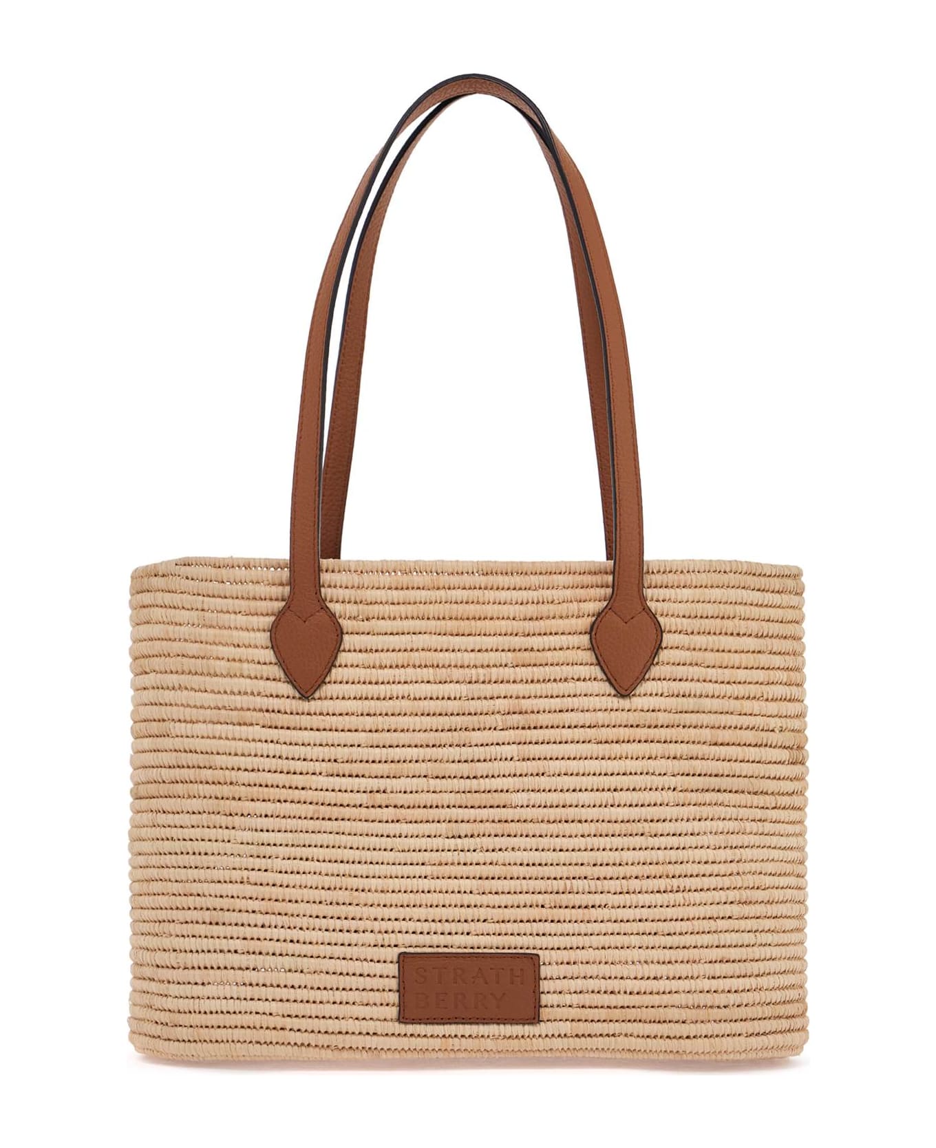 Medium Basket Bag In Natural Raffia With Leather Details And Metal Closure