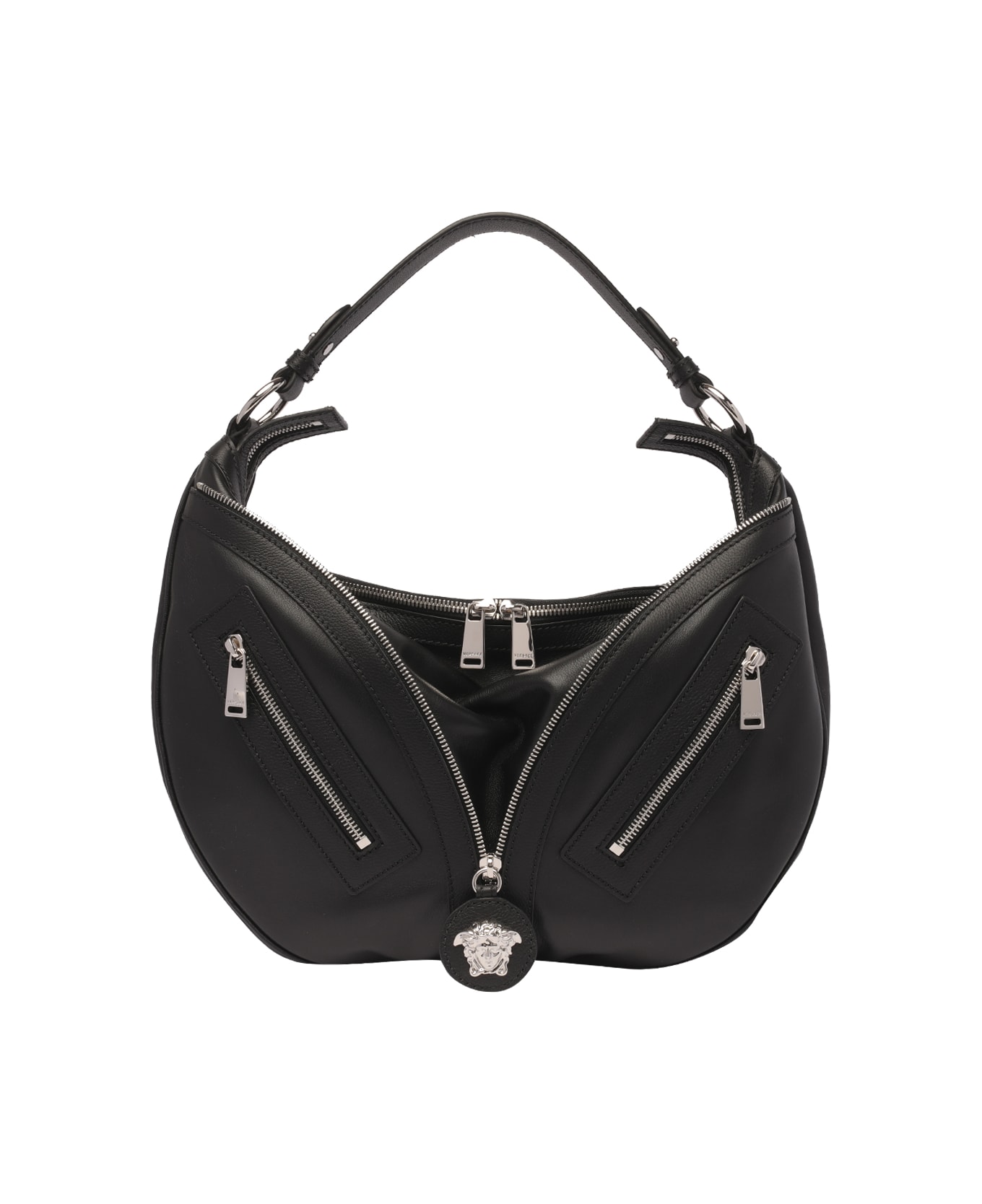 Versace Repeat black hobo bag, zip closure, inner zipped pocket, 2 external zipped pockets, removable hand strap, removable and adaptable strap Composition: 100% Calf Leather