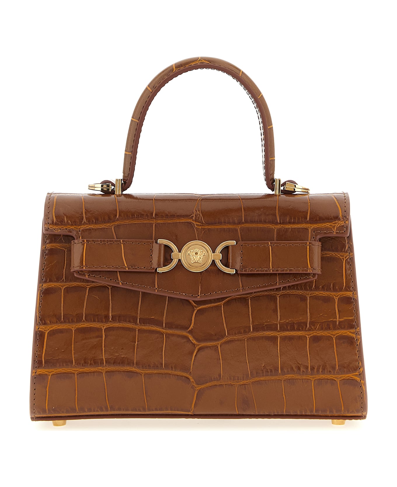Small handbag in embossed crocodile effect leather, magnetic flap closure with front metal 'Medusa '95' detail, fixed handle, rigid base with metal feet, adjustable and removable shoulder strap. Composition: 100% calfskin leather (Bos Taurus)