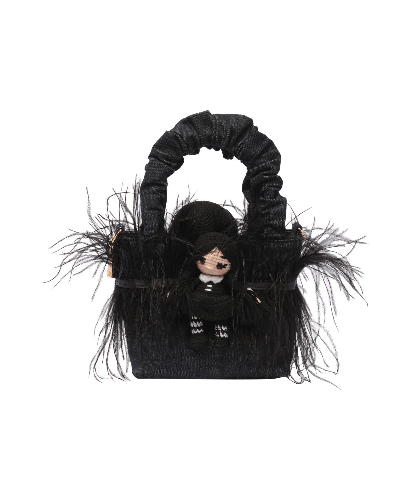 La Milanesa denim Mercoled' handbag, feathers details, magnetic closure, inner open pocket, removable shoulder strap