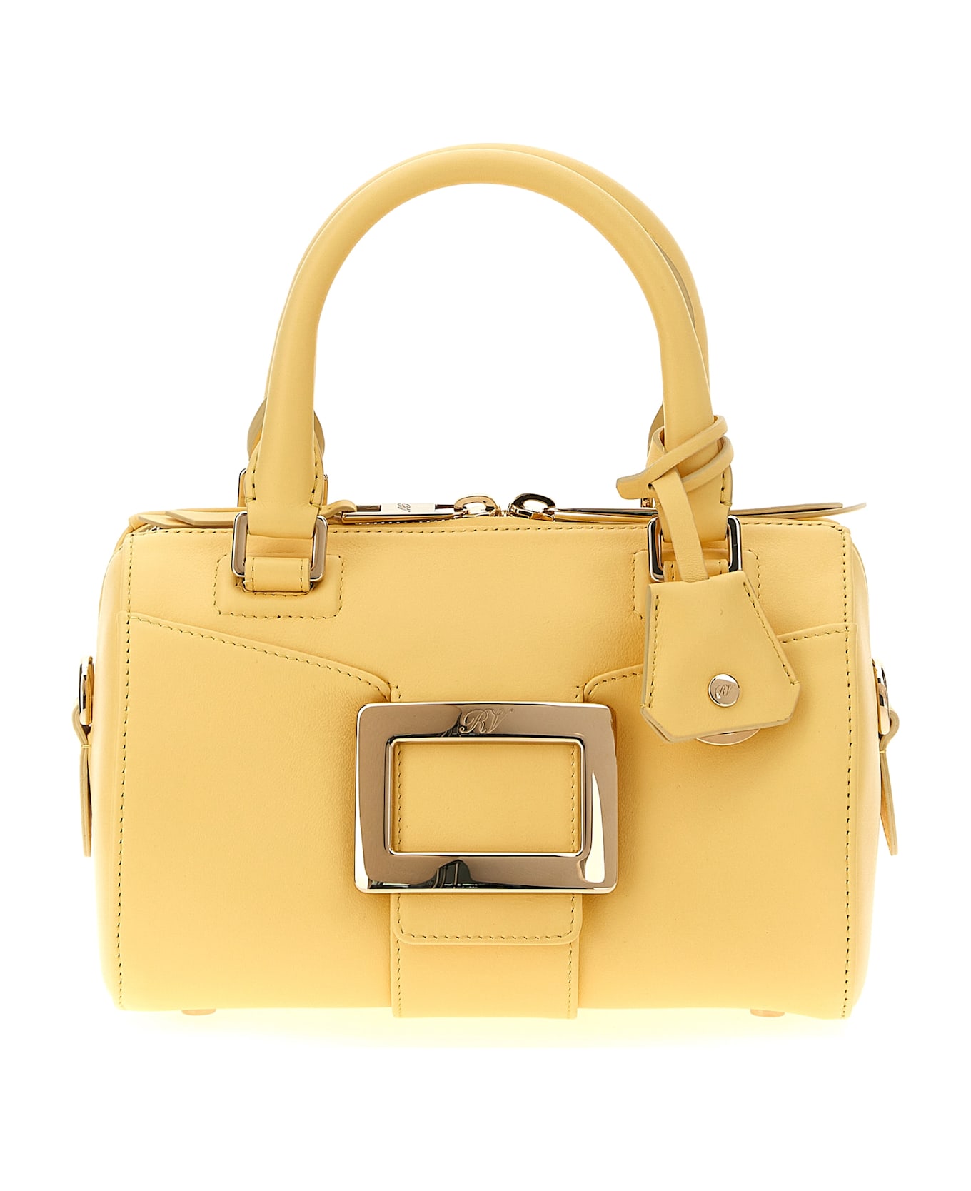 'Mini Belle Vivier' leather handbag, metal buckle with front engraved logo, double fixed handle, zip closure, keyring with removable ring, adjustable and removable shoulder strap.