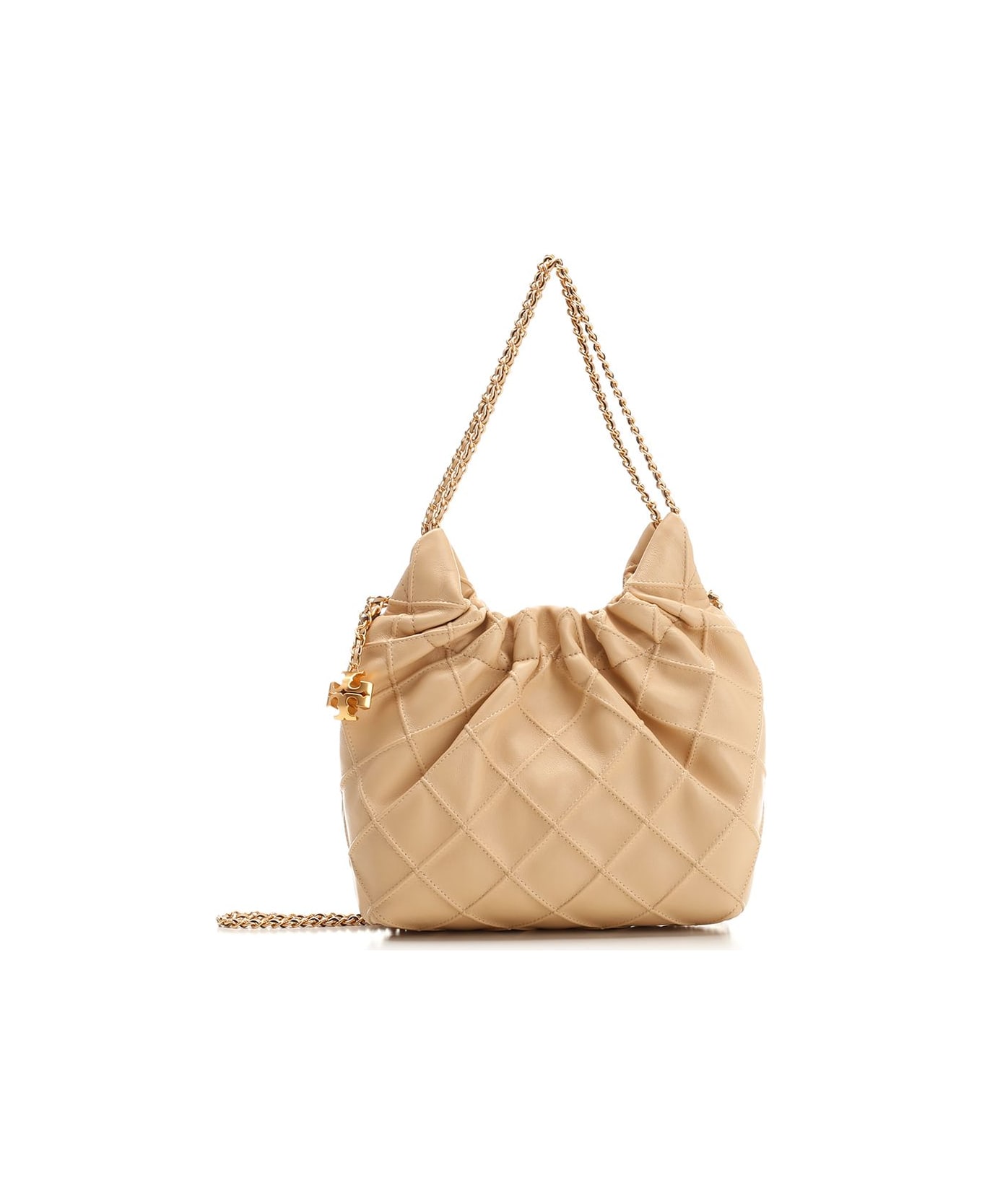 Mini 'Fleming' tote bag in nappa leather with diamond motif by Tory Burch, with chain handles, large internal compartment, magnetic closure.