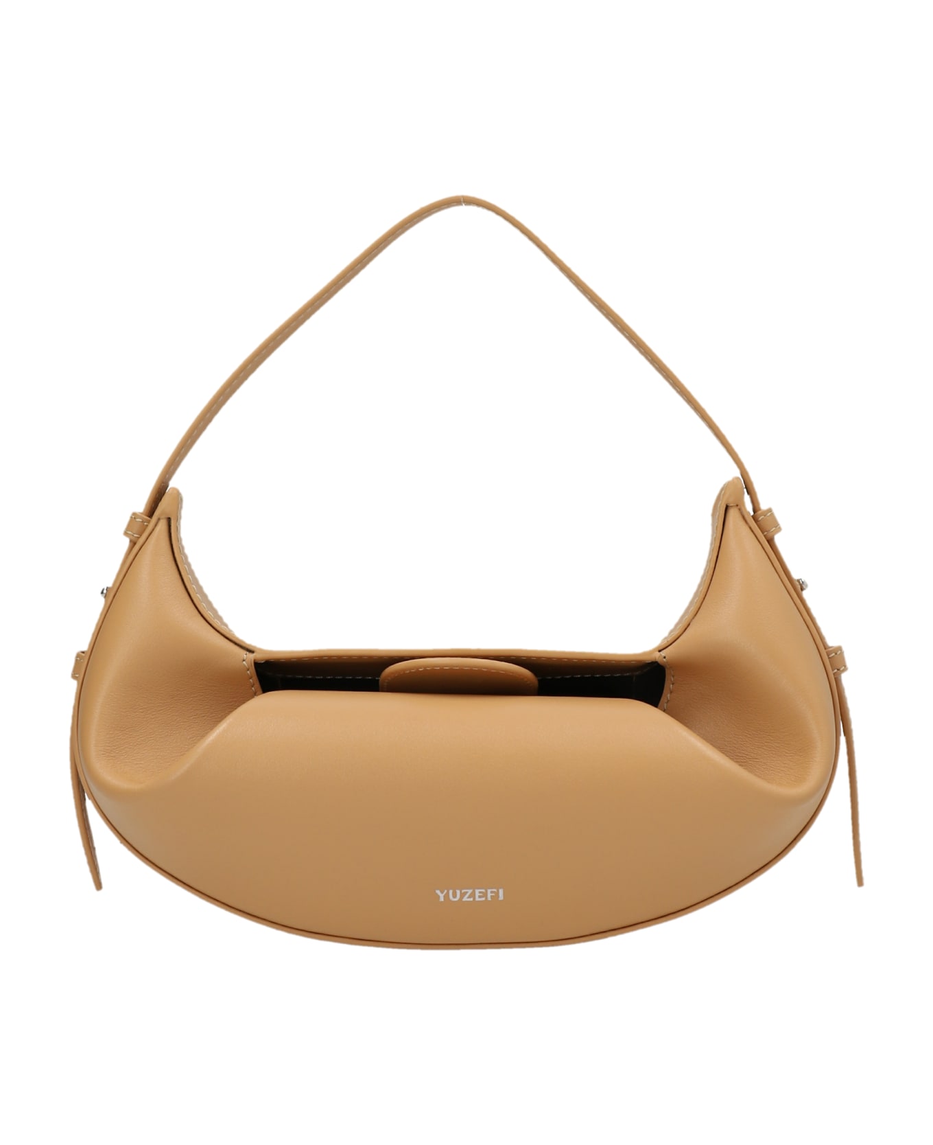 'Mini Fortune Cookie' supple leather handbag with suede lining and adjustable leather shoulder strap.