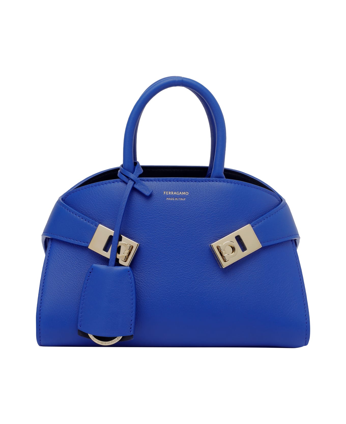 Ferragamo blue Mini Hug handbag, 2 inner slots, 2 handles, adaptable and removable strap, frontal logo Composition: 100% Calf Leather