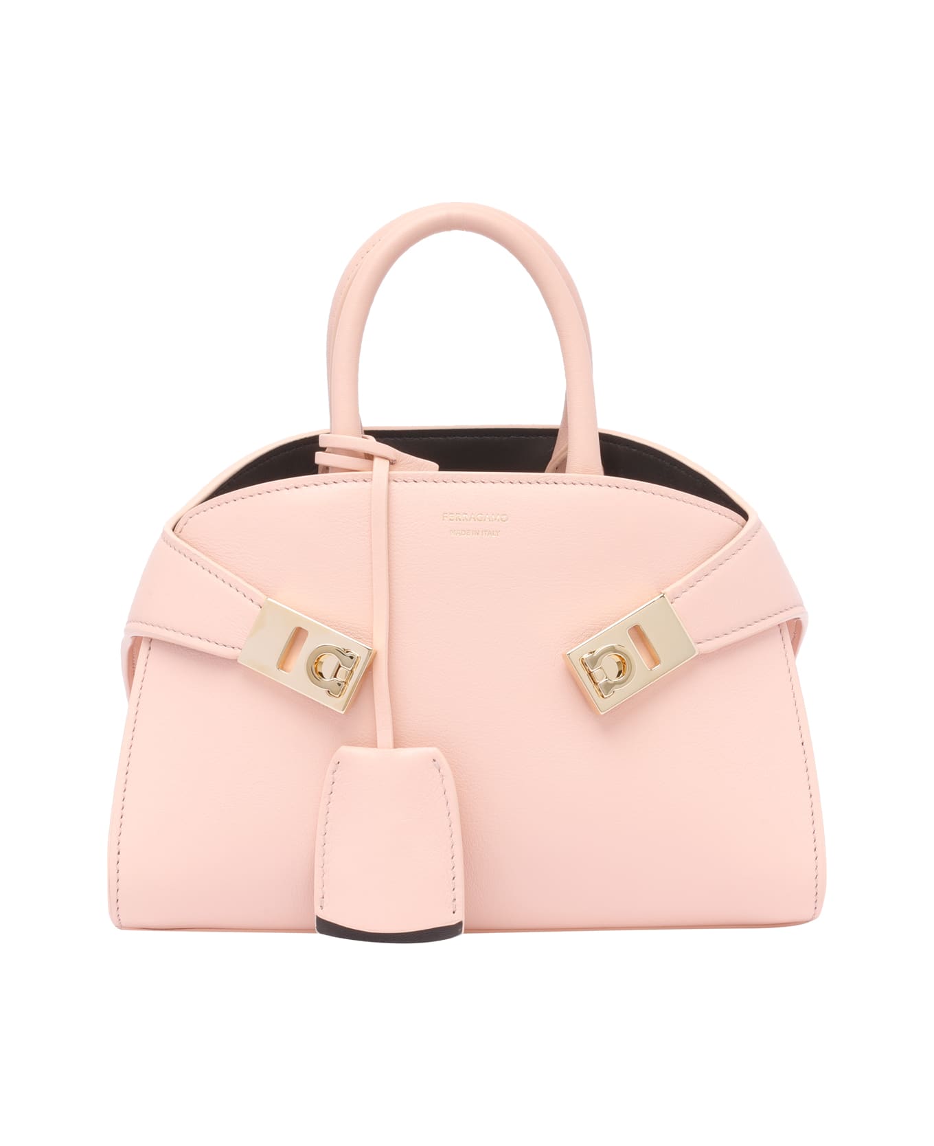 Ferragamo pink mini HUg handbag, 2 inner slots, 2 handles, adaptable and removable strap, frontal mini logo Composition: 100% Calf Leather
