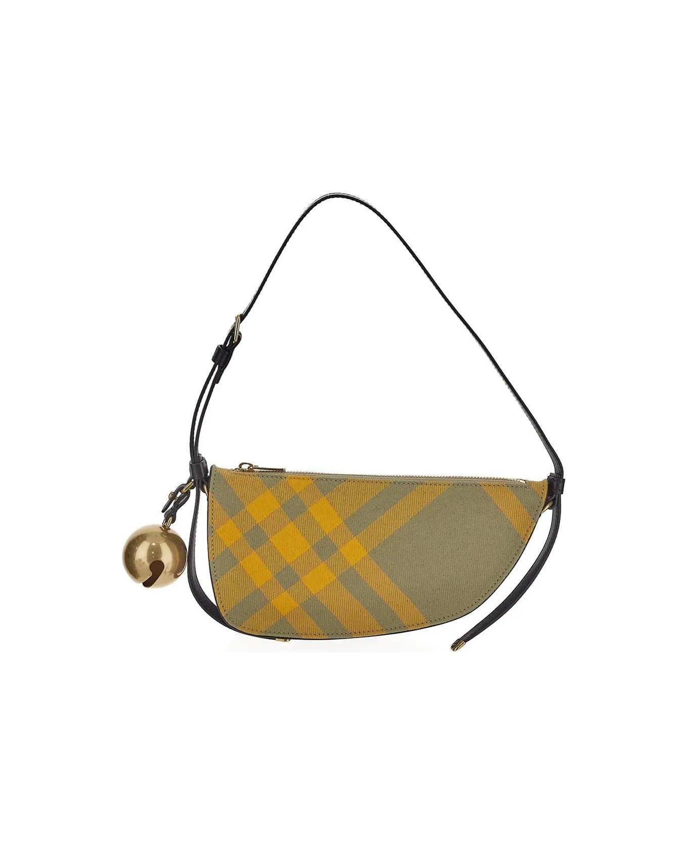 Burberry mini bag in polyester with iconic tartan print, zip closure, leather trim and golden bell detail Composition: 66%Polyester 34%Wool