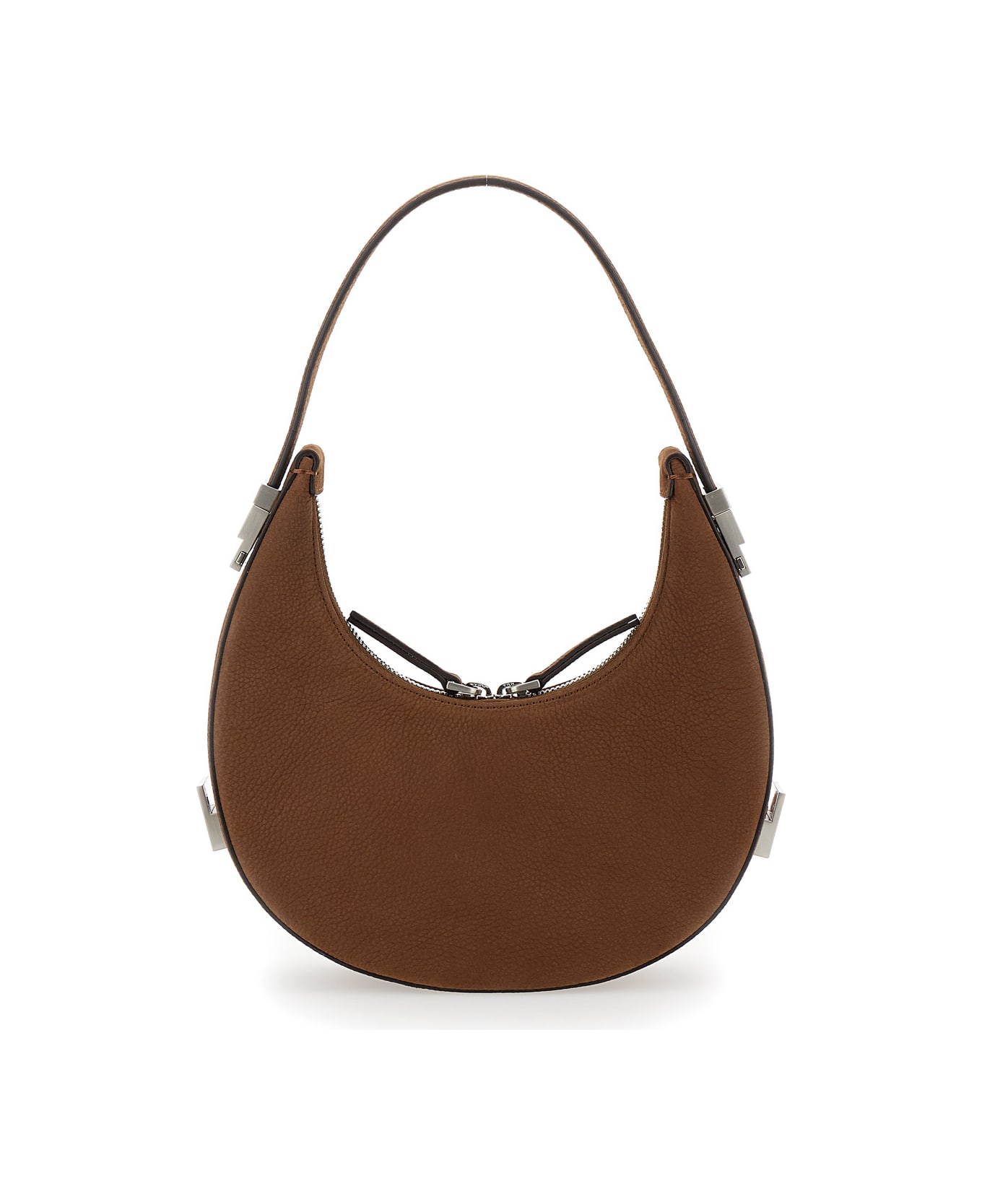 Hobo handbag Brown Adjustable handle Zip closure One main inner compartment Silver tone metalware Engraved logo Leather Dimensions: 6x12x21 cm
