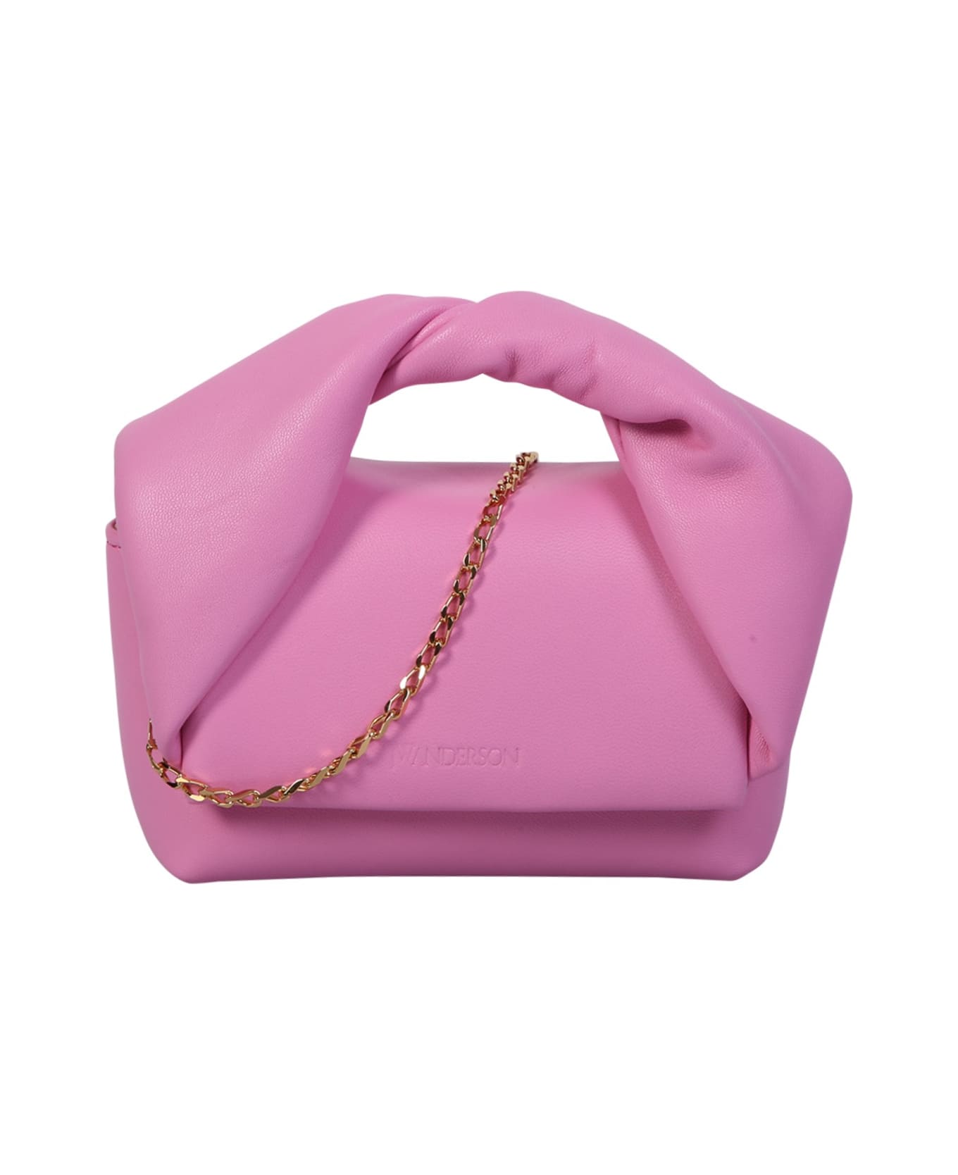 Foldover top. Concealed magnetic fastening. Main compartment. Internal pocket. Engraved internal logo. Twisted detail hand. Detachable shoulder strap. Gold tone hardware. Color: pink