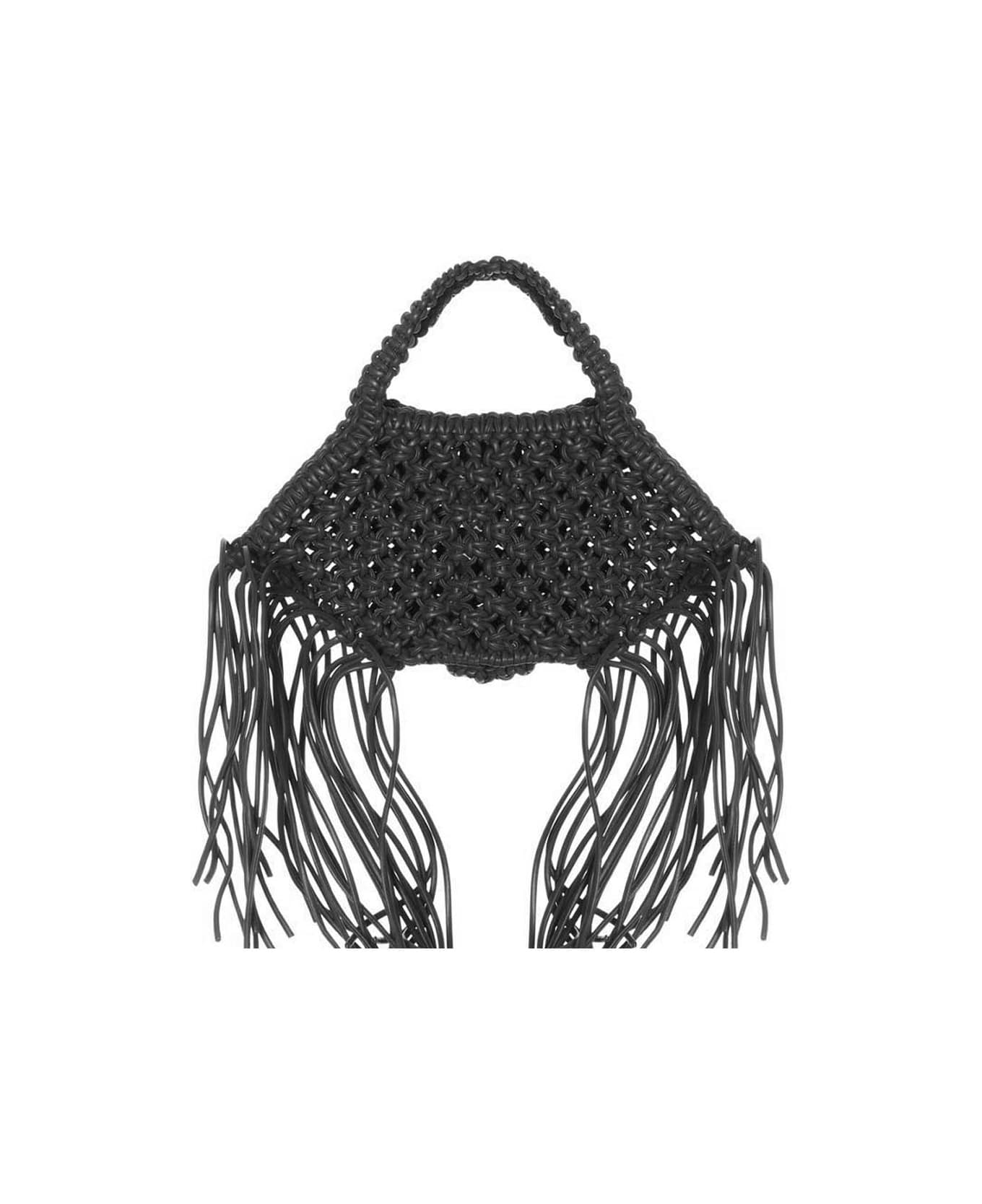 Mini woven' braided leather handbag with handle and fringes.