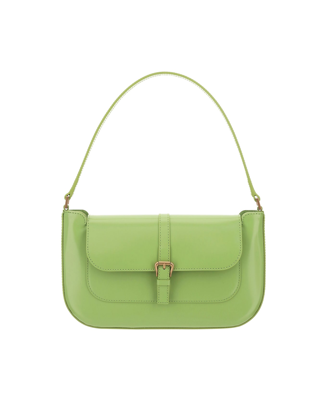 Calfskin Miranda Shoulder Bag by By Far, stiff leather handle, front opening with snap button, inside welt pocket with brand logo plaque.