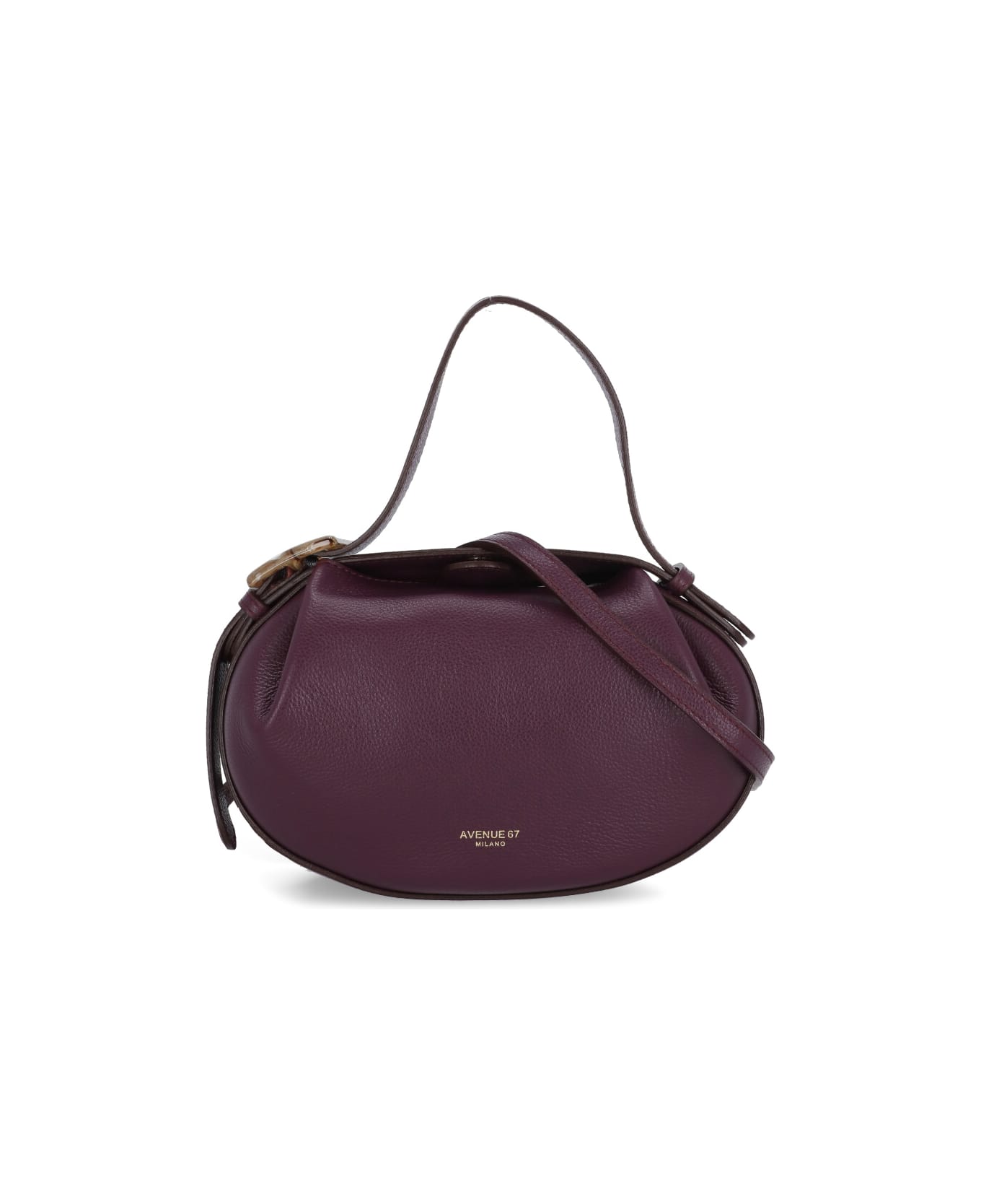 Monica Hand Bag from Avenue 67: - Purple Avenue pebbled leather hand bag for woman - Handle with logoed buckle - Removable and adjustable shoulder strap - Interior zip pocket - Magnetic button fastening - Front golden logo