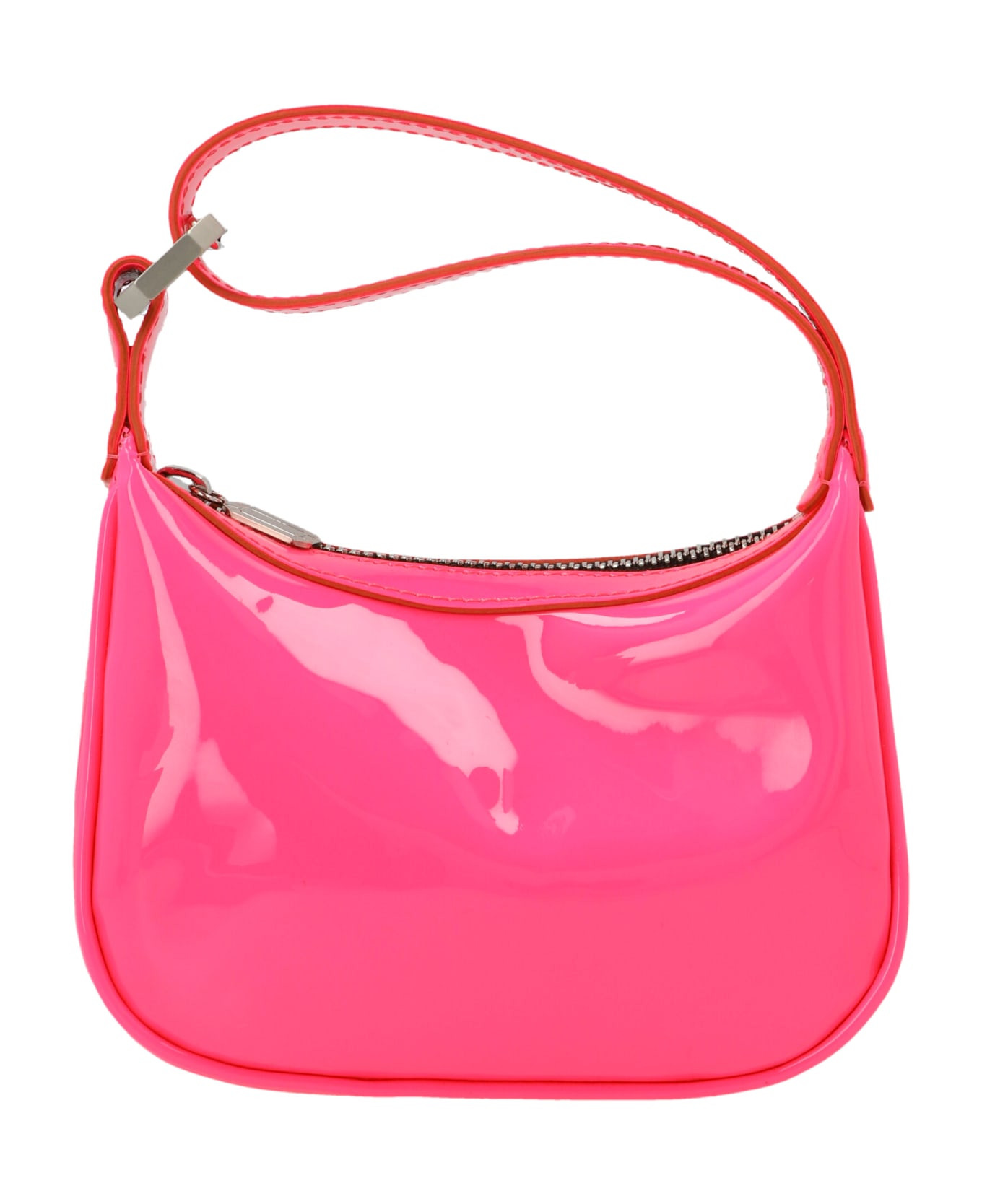 Moon mini patent leather handbag with a silver hook.