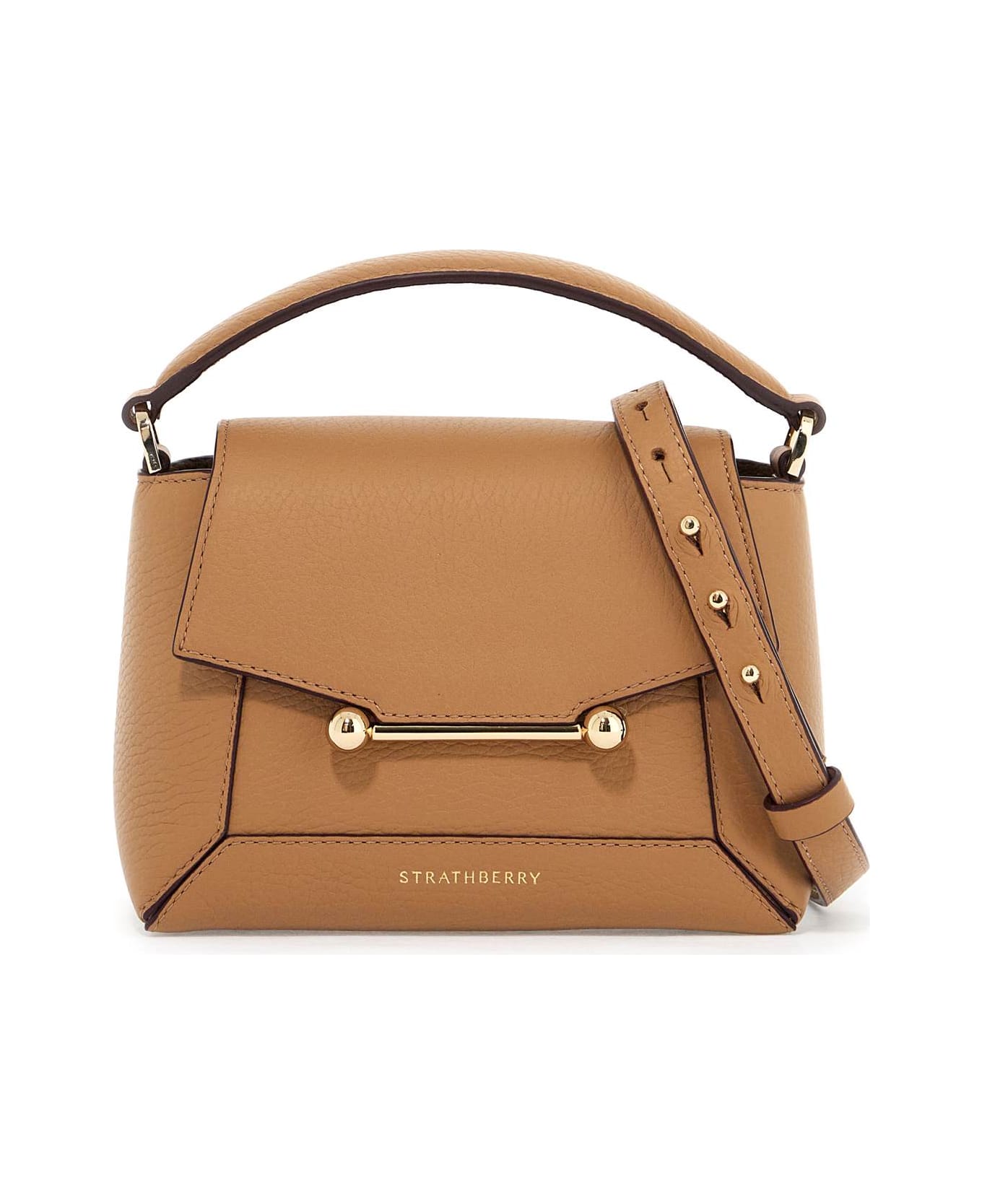 Strathberry Mosaic Nano bag crafted in grained leather, featuring the iconic metal bar applied to the flap and contrast topstitching. Magnetic closure, suede interior with one open pocket and detachable, adjustable shoulder strap. Gold-finished metalware.