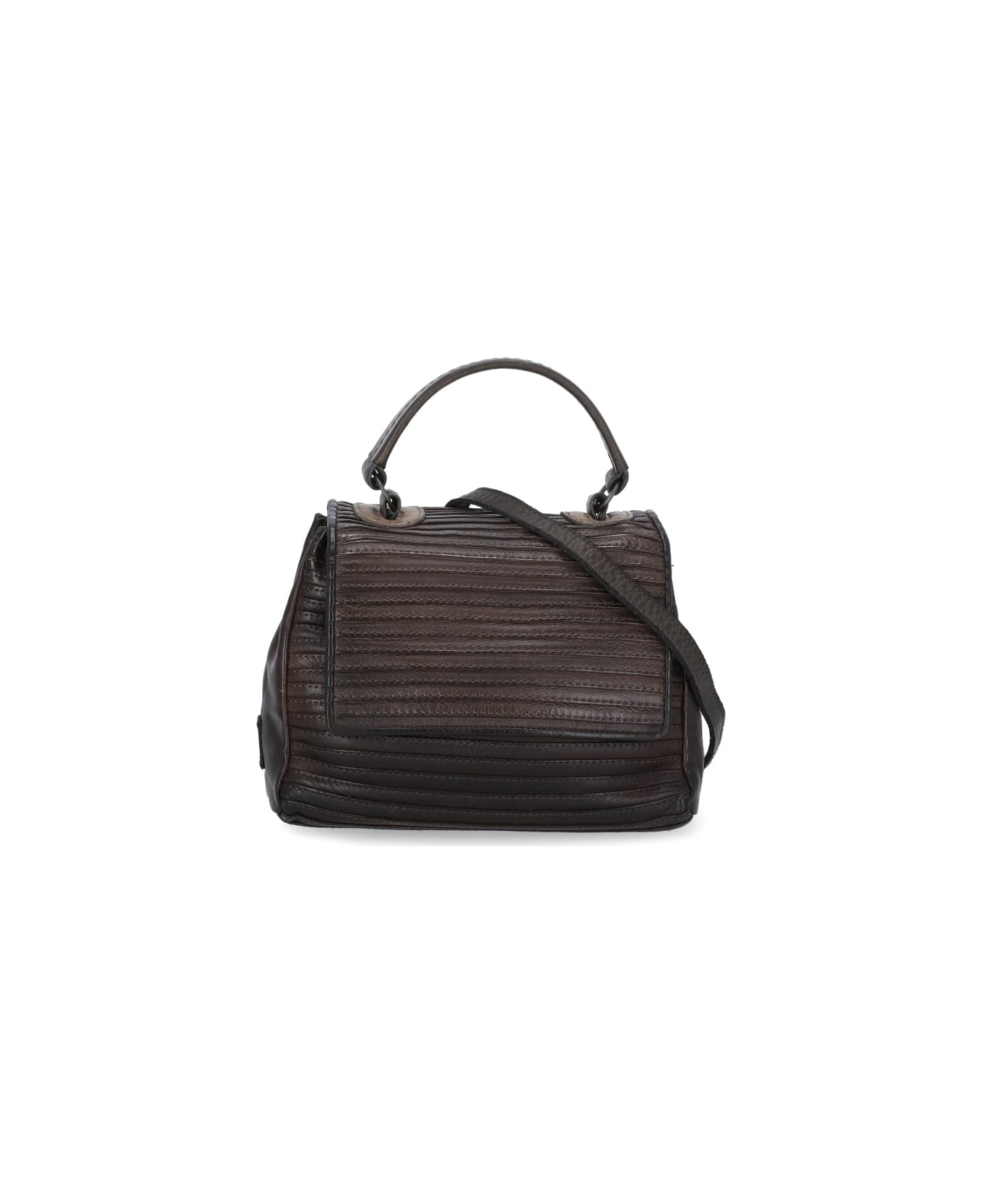- Brown Majo leather bag for woman - One handle - One removable and adjustable shoulder strap - One main compartment - One internal zip pocket - Front flap and magnetic button fastening - Side tone on tone logoed patch