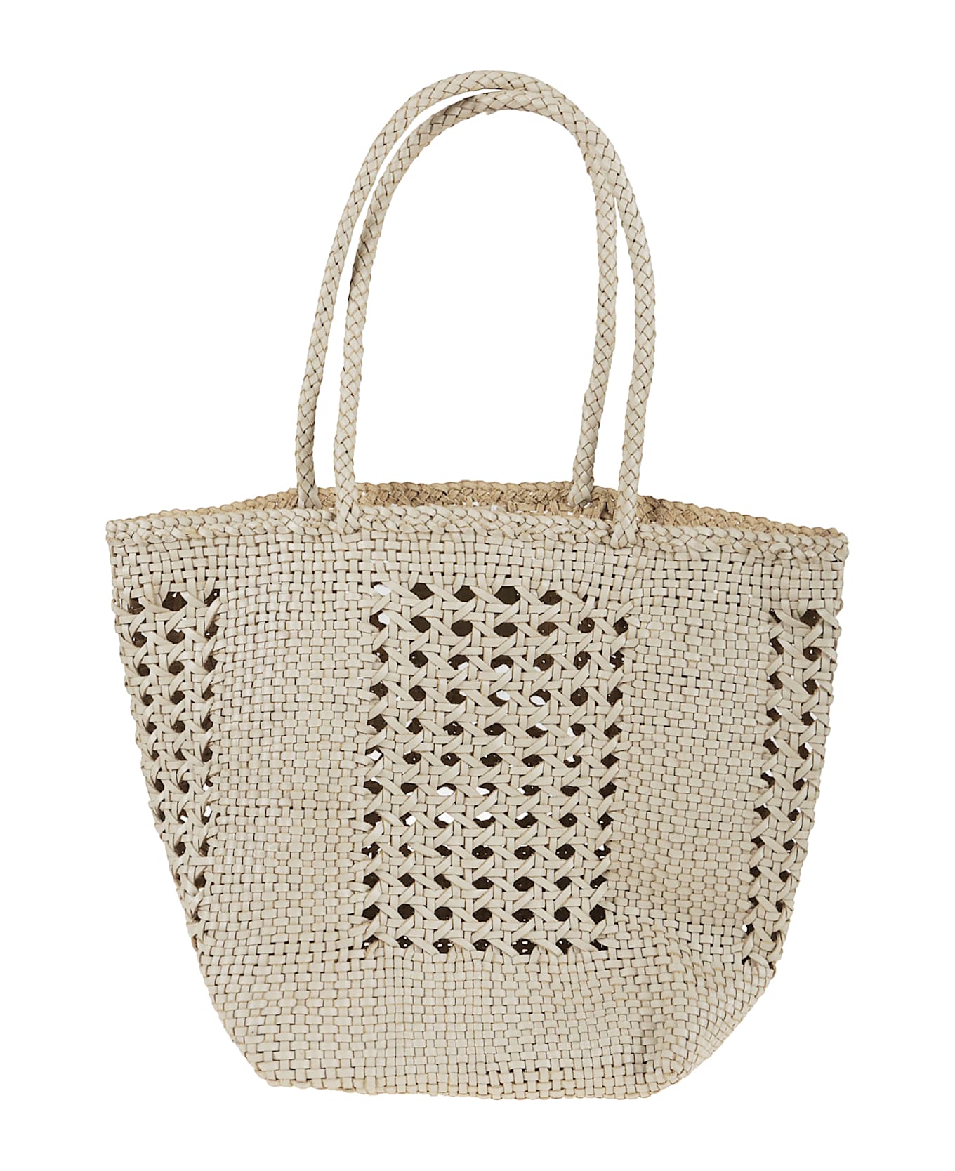 OPEN CANNAGE WEAVE BASKET bag in buffalo calf leather by DRAGON. Unlined and open at the top; braided top handles. A charm depicting an antiqued medal of St. Christopher is hand-sewn into the interior of each Dragon Diffusion bag, in homage to the patron saint of travellers: our brand`s seal of authenticity.