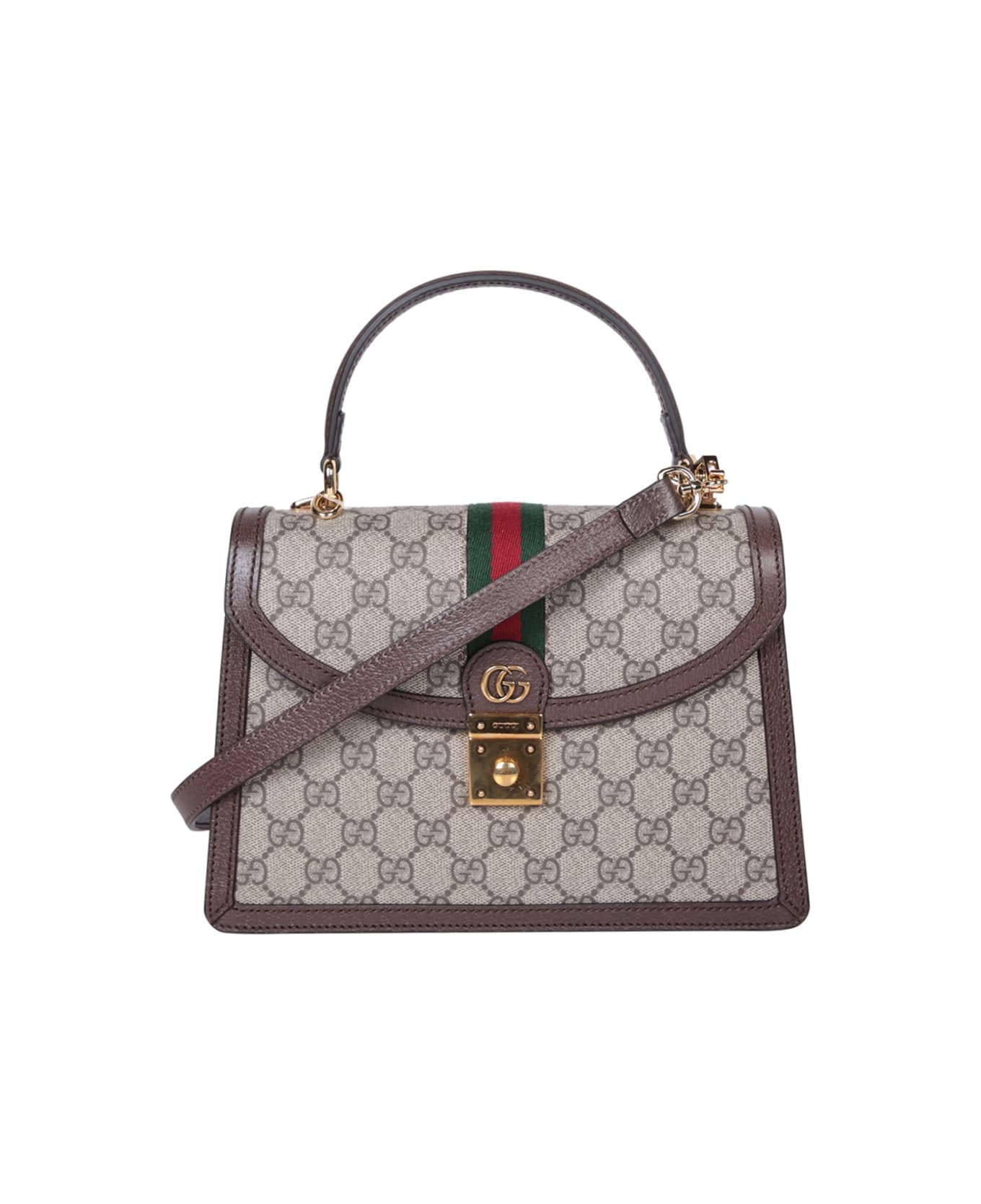 Top single handle. Foldover tip. Magnetic fastening. Split compartment. Internal welt pocket. Internal zip pocket. All-over GG pattern. Front GG plate. Front Web tape detail. Detachable adjustable shoulder strap. Color: beige