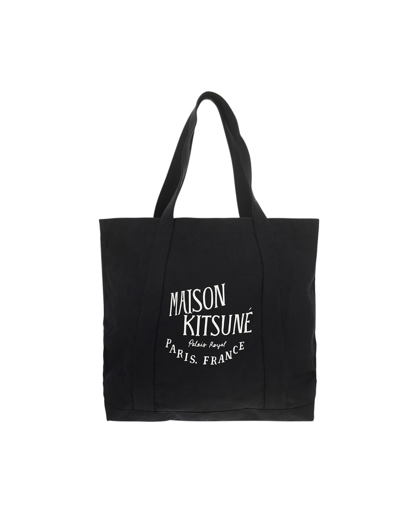 Cotton Palais Royal Shopping Bag by Kitsune, iconic brand signature printed in contrast on the front, two flat webbing handles, two inside welt pockets.