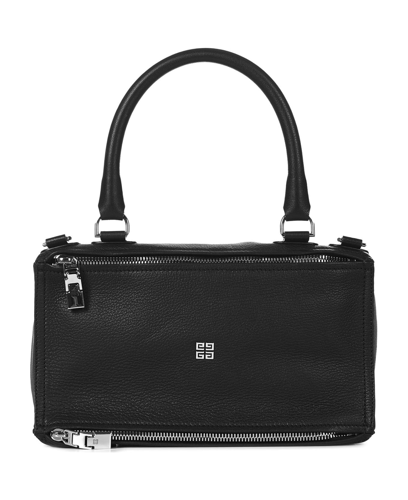 Sculpted by the iconic soft cube silhouette, the Pandora bag by maison Givenchy is one of the it-bags that are difficult to resist. Made of black leather, made strong by the hammered effect, it is illuminated by the silver metal details of the 4G logo on the front and matching the double zip closure with logoed zip puller. Here in the medium version, she is perfect to be worn all-day-long: comfortably over the shoulder during the day and by hand during your evening outings for a tres chic twist.