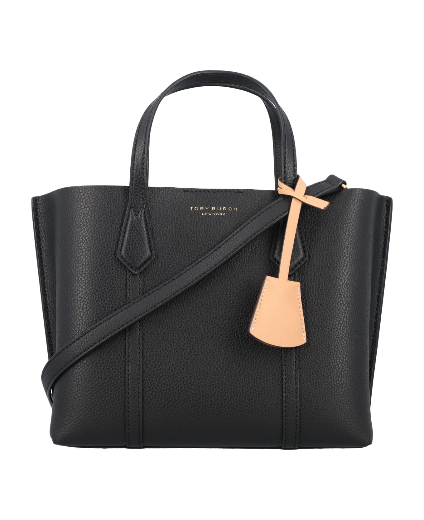 Perry Triple-compartment Small Tote Bag By Tory Burch. Featuring: Pebbled Leather Two Top Handles Bridge With Magnetic Snap Closure Engraved "tory Burch New York" Print In Front Adjustable And Removable Crossbody Strap Hanging Contrasting Charm One Center Zipper Compartment One Interior Slit Pocket Protective Bag Feet Height: 19,5cm Width: 27,5cm Depth: 10cm
