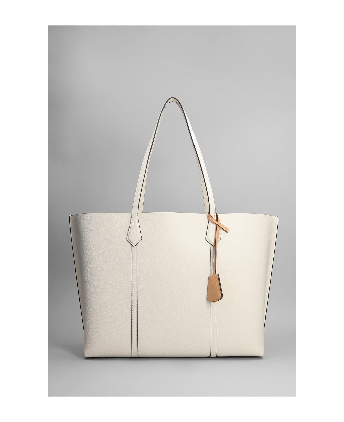 Perry triple Tote in beige leather, double handle, tag logo detail, stitching detail, 100% leather, Made in Vietnam, Height 295 mm, Width 455 mm